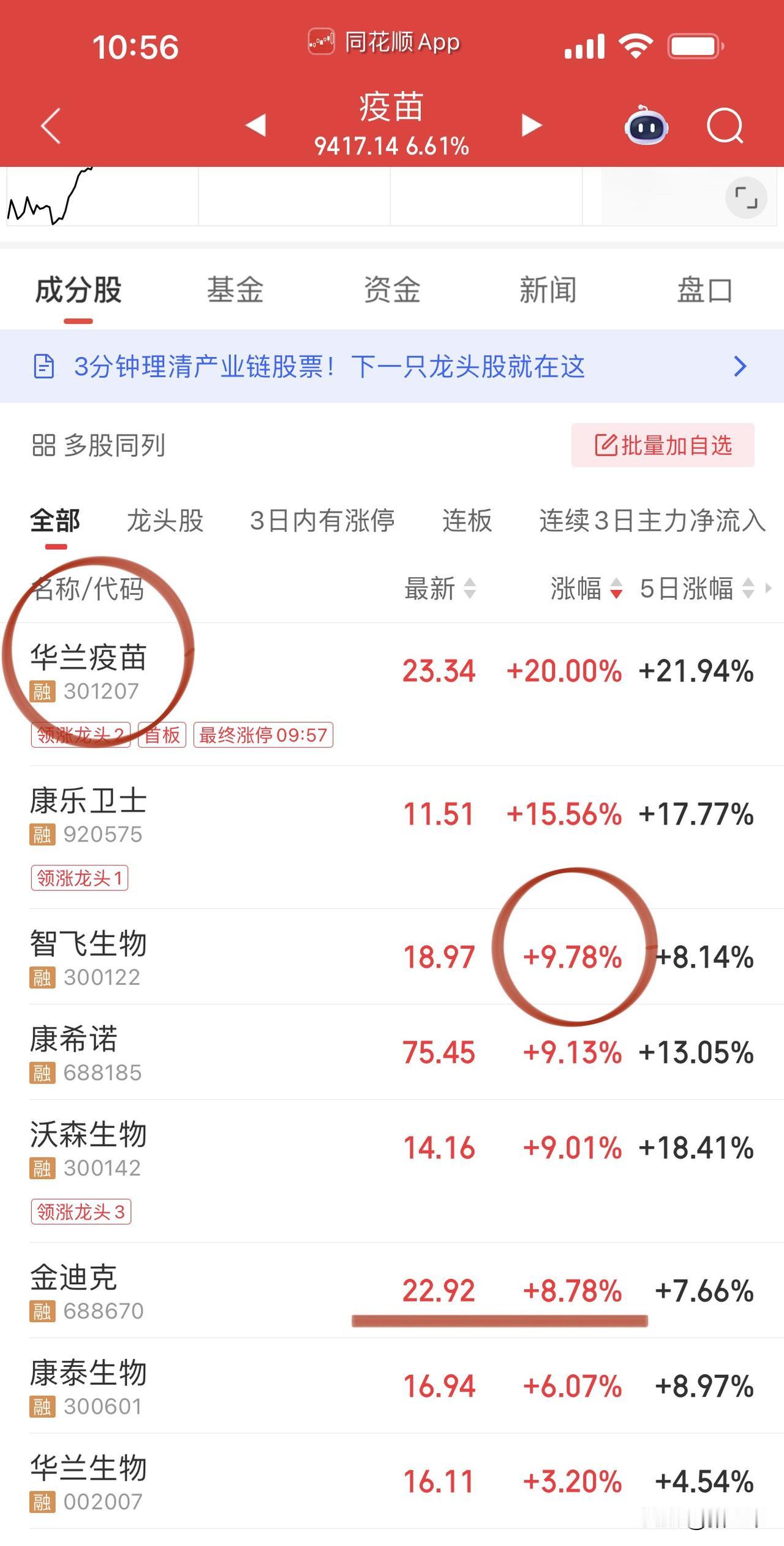 谁能想到疫苗板块大涨近7%, 华兰疫苗、智飞生物、沃森生物、康希诺这些超跌高辨识度标的领涨。 牛市的逻辑就是这么霸道的, 量在势在, 只要成交量足够, 板块稍有风吹草动一点就着星火燎原! 现在是牛市第四阶段, 手中没涨的消费医药筹码要珍惜, 暖风大概率会送爽! 牛市不抱紧媳妇跑没影, 熊市抱太紧媳妇没有影! …