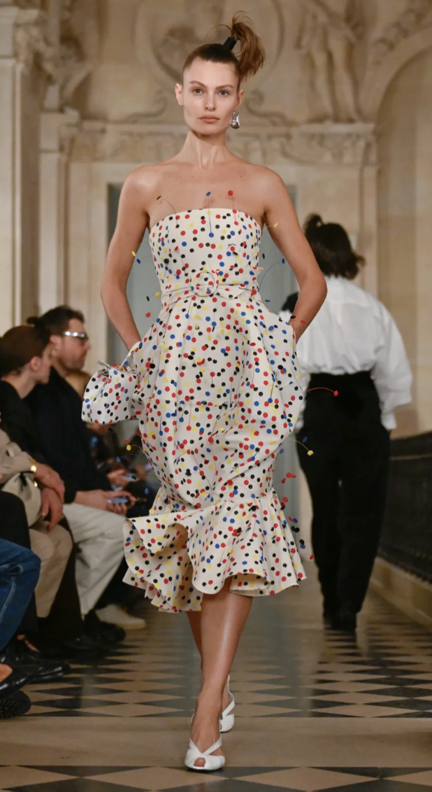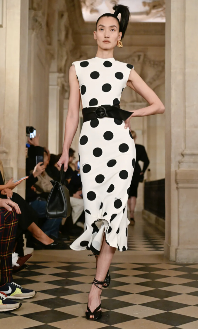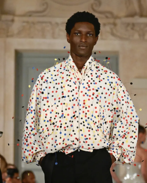 秀场分享:男装周 Jacquemus 在毕加索博物馆发布Jacquemus 2026 秋冬系列弗朗索瓦-泽维尔·拉兰标志性的毛绒绵羊雕塑,被演绎为手袋设计。图一。图二毕加索|《Portrait of Paulo as Pierrot》锥形帽配以绒球点缀,非常具有戏剧感(图一look)图五达明安·赫斯特的《Spot Painting》 1986圆点图案的在秀场上呈现在连衣裙和衬衫口袋巾上。 张丽娜、贺聪、李禾佳亮相本次秀场。巴黎男装周大秀直击