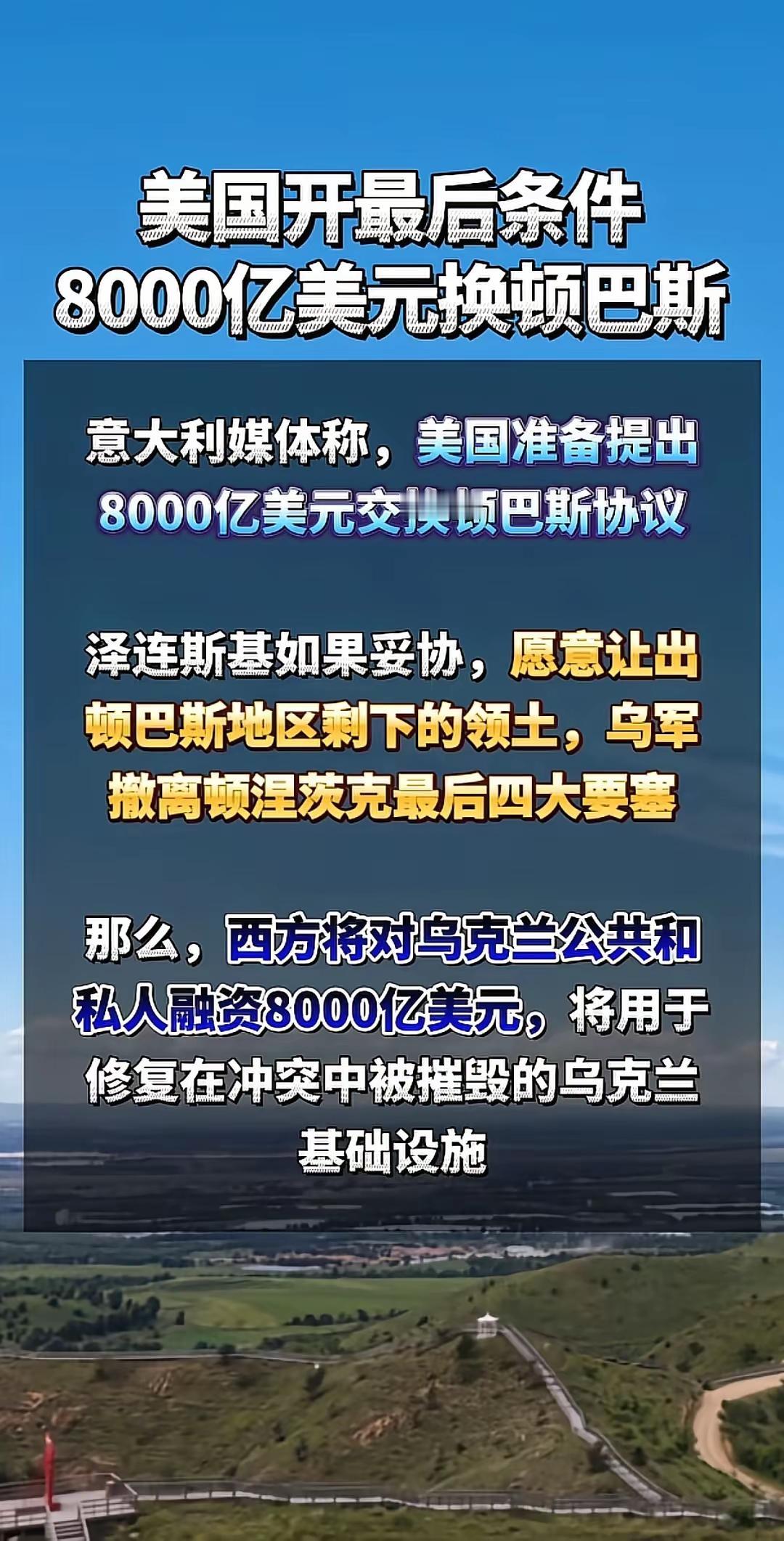 老美什么时候变的和大毛一样了,开始觊觎别国的领土了,经济殖民这套搞不下去了吗? 先是格林兰岛,现在开始惦记乌克兰的顿巴斯,不过这次说是买,资金用于重建乌克兰。