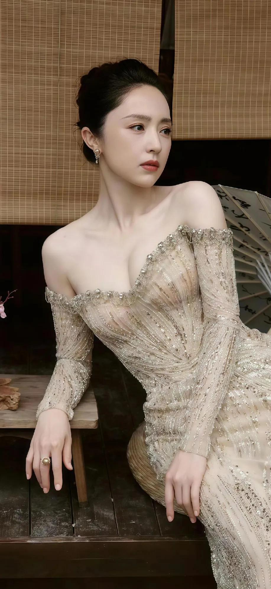 董璇这状态,我愿称她为冻龄女神天花板✨ 姐姐的新写真直接鲨疯了!一袭鎏金钻饰礼服勾勒出曼妙曲线,露肩设计衬得肩颈线条绝美,水墨折扇一摆,中式氛围感直接拉满。 吊带白裙自带慵懒松弛感,荷叶边抹胸裙又甜又飒,还有墨绿丝绒裙的复古优雅,每一套都精准踩中审美点。 40+的年纪,却有着20+的状态,这颜值和身材管理真的狠狠慕了!姐姐请把“冻龄”打在公屏上! 董璇 冻龄女神