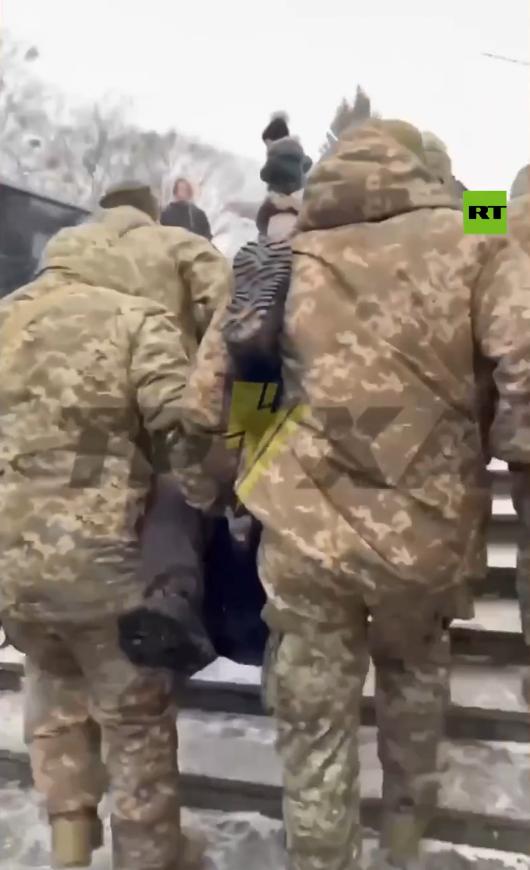 乌克兰征兵又有新套路了! 当地时间1月25日,几名征兵官埋伏在哈尔科夫地铁站出口,看到合适的对象,就一哄而上。五六个人抬手抬脚,给人丢进小巴车,然后直送前线。 当地媒体称,抓捕新兵、把他们塞进小巴车的过程叫做“巴士化”,相关行动已经演练了无数次,技战术标准规范,基本不会失手。 被抬的这位一直在呼救,请路人报警。 客观的说,的确有不少热心人士上前帮忙,但他们那几下花拳绣腿毫无作用。征兵官人数众多、分工明确,有负责抓人的,有负责阻挡围观者、和他们扭打的,还有放话威胁说都带走的。 有消息称,乌克兰当局计划在2026年初再征召200万人,以阻挡俄军攻势。 也不知道等战争结束,乌克兰还会剩下几个人。