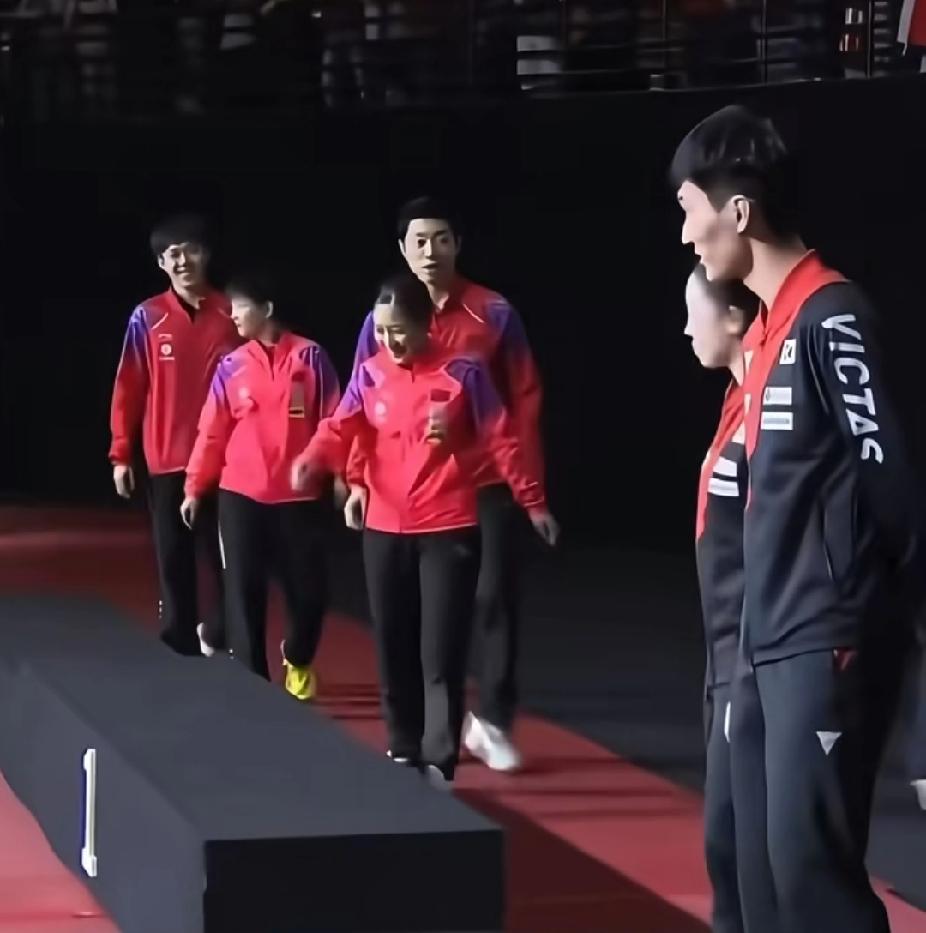 2019亚锦赛颁奖名场面 国乒这波换位笑麻了 谁懂啊!2019亚锦赛混双颁奖现场也太欢乐了,国乒全员上演花式换位,主打一个手忙脚乱的可爱~ 冠军昕雯联播愣是走到了最后,莎莎一眼察觉不对回头看,大头直接一把拽住她让道,乖乖把C位让给许昕刘诗雯。好不容易站到领奖台边,刘诗雯又发现站位不对,拉着许昕赶紧调整男女搭配的位置,前前后后换了好几回,颁奖现场秒变走位现场,韩国队选手怕不是都看懵了😂 领奖领出了喜剧效果,国乒这群宝真的自带笑点,这波接地气的小混乱,越看越喜欢! 莎头组合 昕雯组合