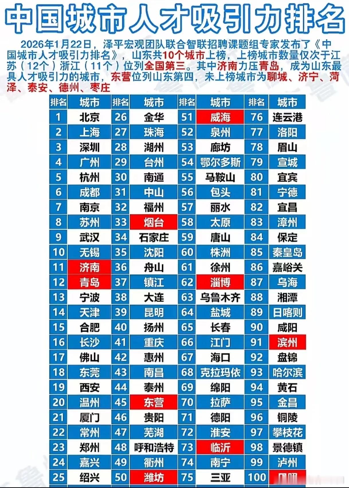 中国城市人才吸引力排名