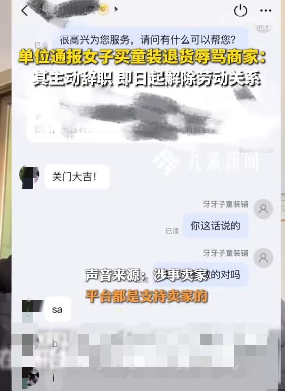 穿脏衣服退货被拒,女子诅咒商家“孩子下地狱”!身份曝光后,全网炸了! 见过不要脸的,真没见过这么不要脸的! 山东一女的把童装穿得脏兮兮的,竟然打包退给商家,被拒绝后直接发私信狂骂,甚至诅咒商家“孩子下地狱”,把商家骂得当场崩溃大哭! 而这女的简直是个“惯犯”啊! 先买90码穿脏了,再买件110码的,把脏的90码冒充新的退回去。 商家拒绝退款,她竟然连续6次申请平台介入!哎呦喂这就是赤裸裸的白嫖!穿完还想退,脸呢? 这还不是最刺目的,这女的竟然还是惠民县融媒体中心的工作人员,平时还在网上标榜“为人民服务”!结果背地里居然是这副嘴脸,真是服了 这波操作直接把咱广大网友看吐了:“就这素质还为人民服务?简直是给单位丢脸!” 事情闹大后,这女的立马怂了,发视频道歉,还借口说自己“孕期抑郁”。 但网友根本不买账:“抑郁不是你作恶的挡箭牌!” 最终,单位顶不住压力,直接让她卷铺盖走人了! 穿脏衣服退货还骂人是真的厚脸皮,现在这女的被开除大家伙说她冤不冤?还有孕期抑郁真的能成为网暴别人的理由吗?评论区说说你的看法!退货衣服 奇葩退货 气愤退货