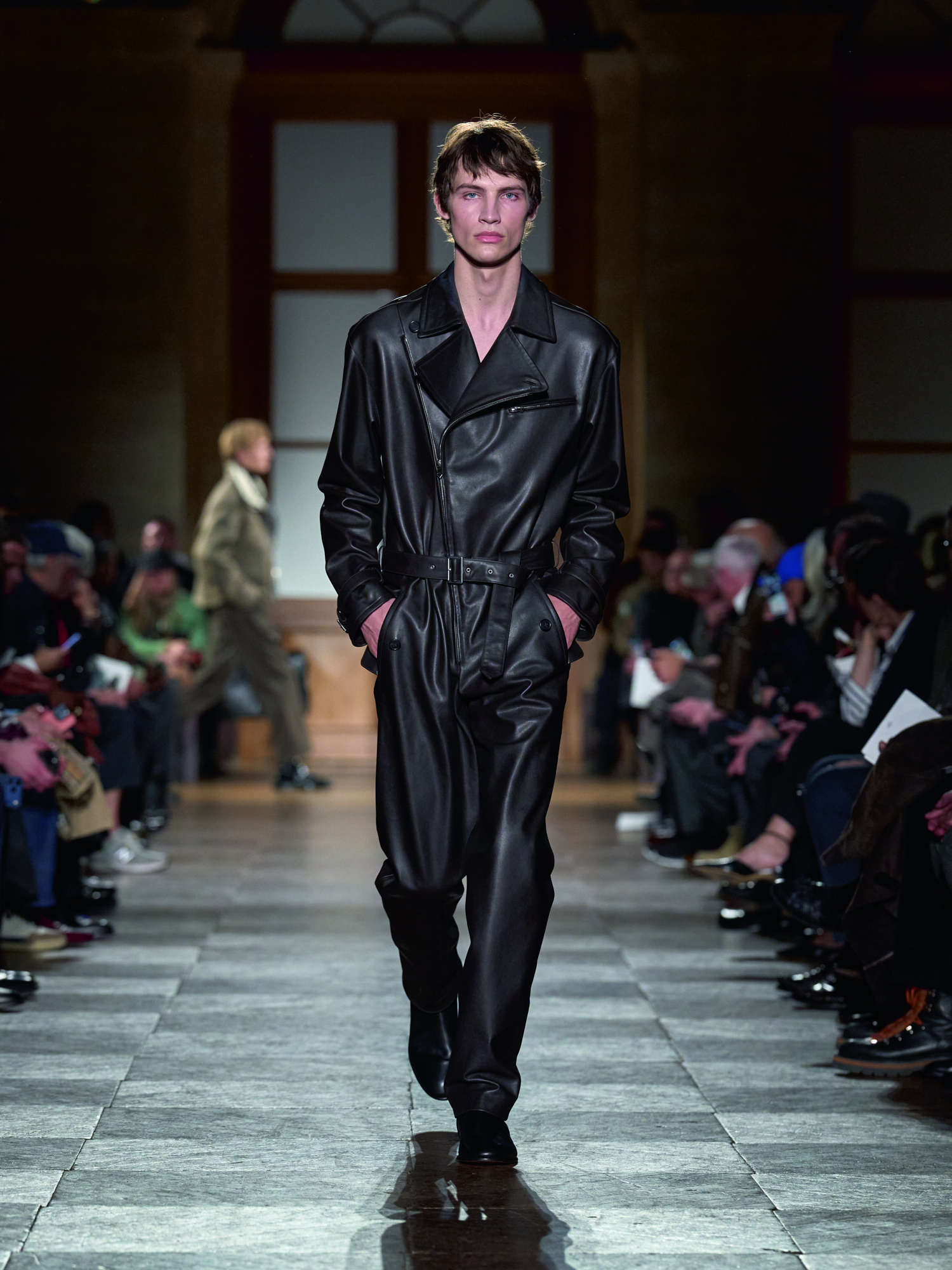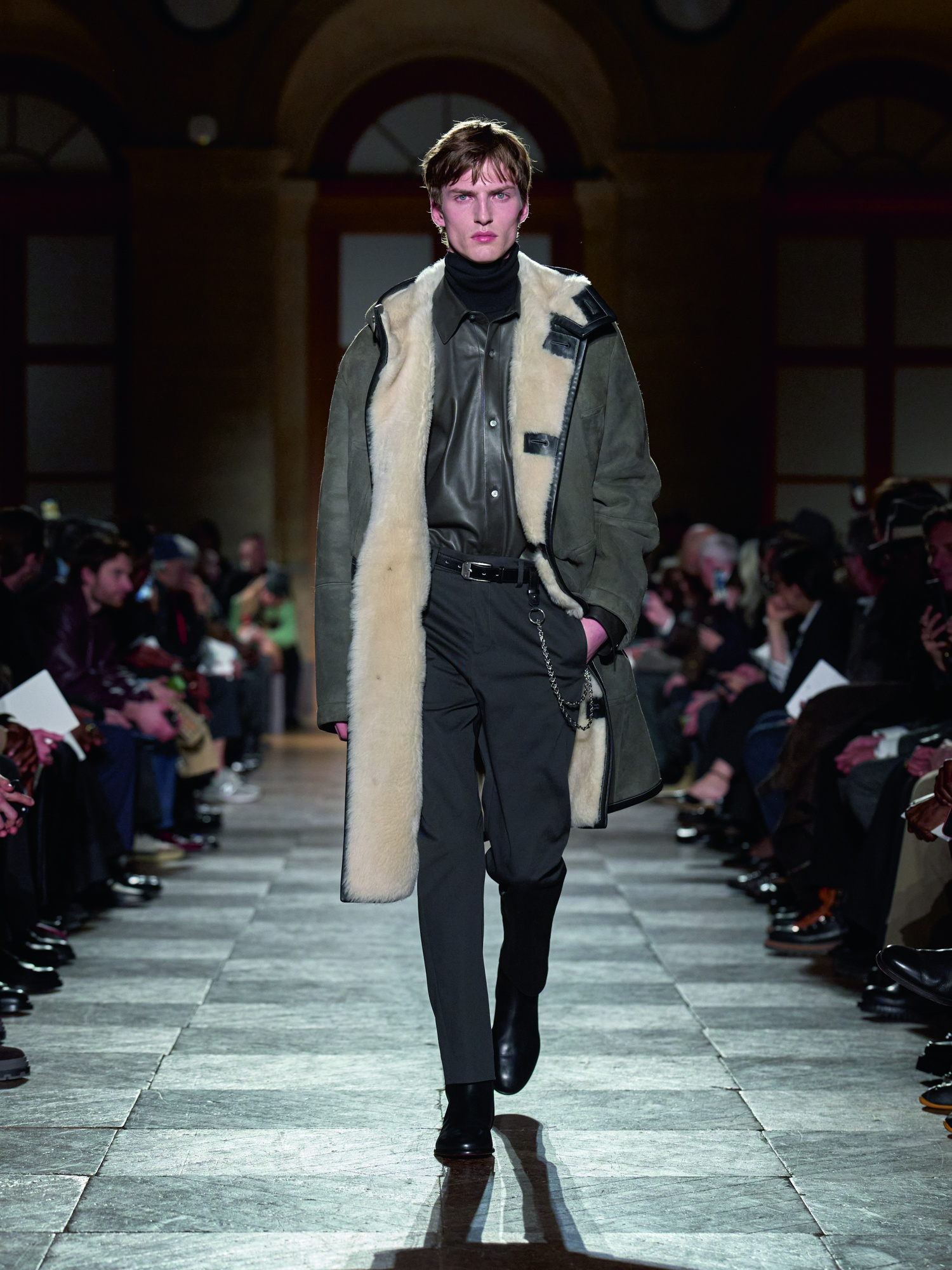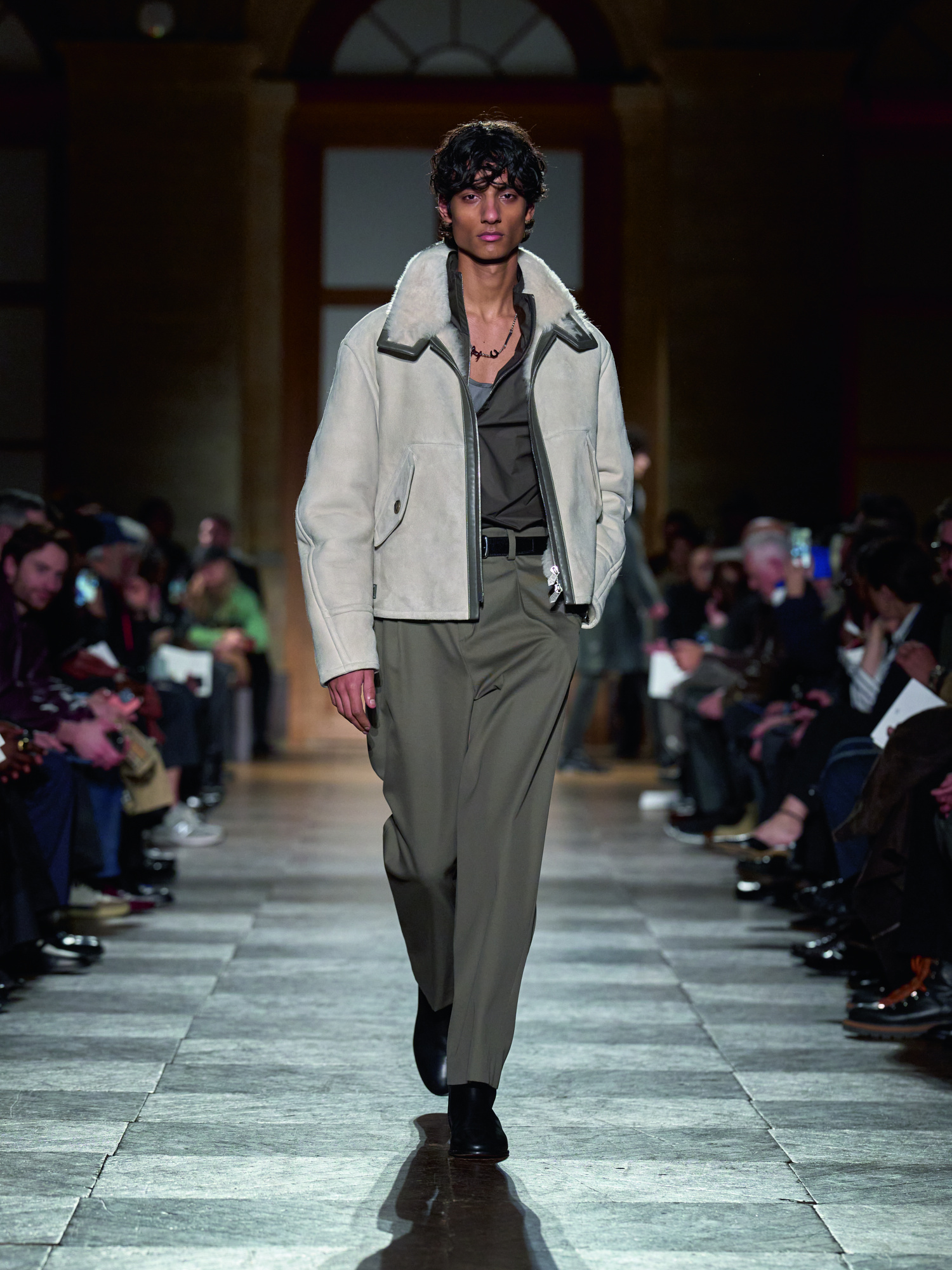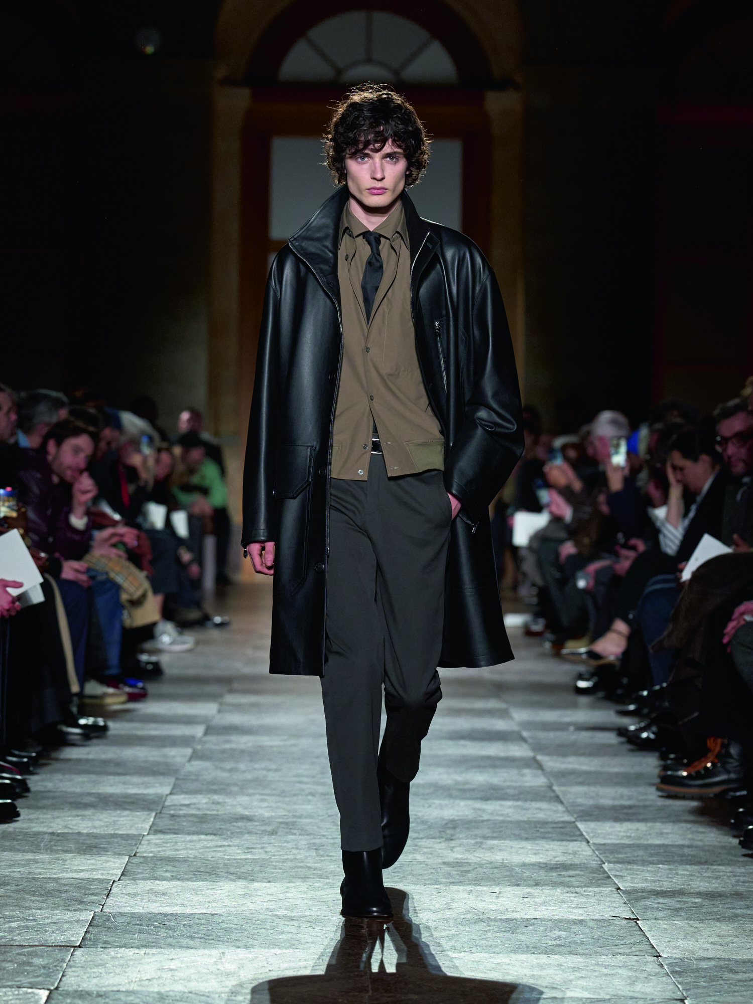 爱马仕正式发布2026冬季男装系列。系列以“流动人生中的恒久陪伴”为理念,融合传统工艺与现代科技。关键单品包括采用Toilovent科技里衬的羊羔毛外套、双面羊绒羊毛旅行大衣等。色彩以墨蓝、绛紫等深色为主,用橙色内衬点缀。标志性的马镫缝线等细节,延续了品牌的工艺叙事。爱马仕2026冬季男装