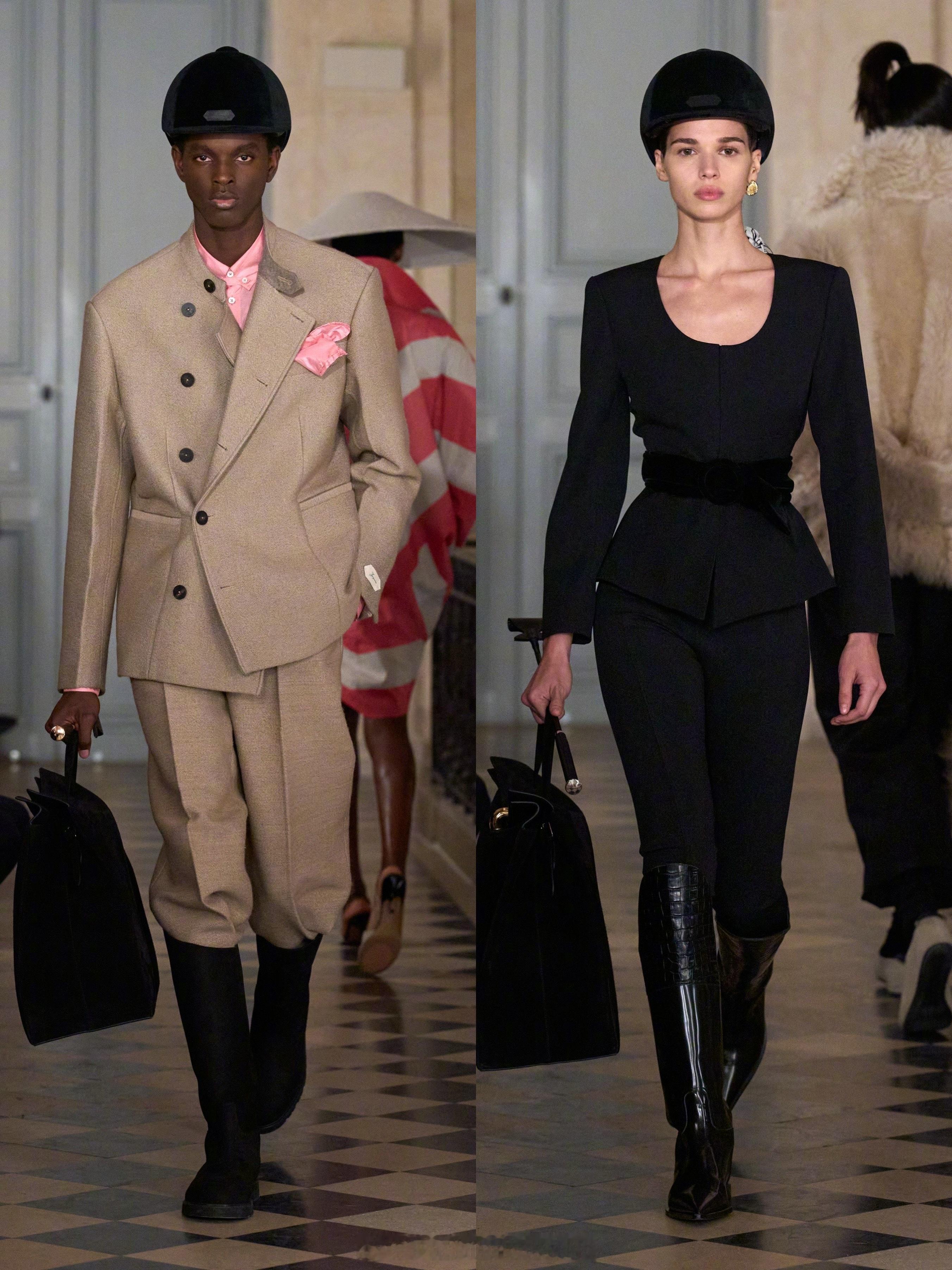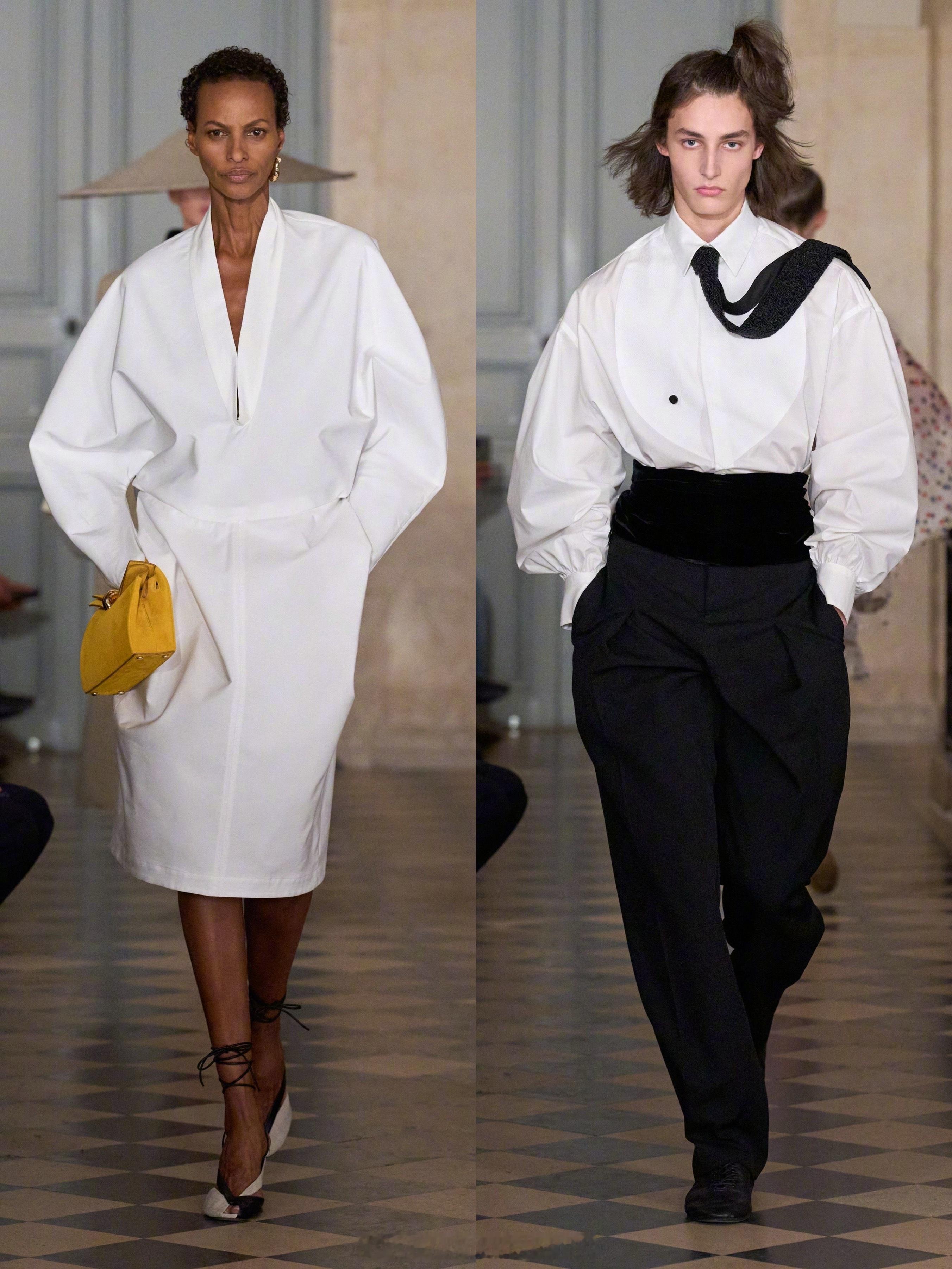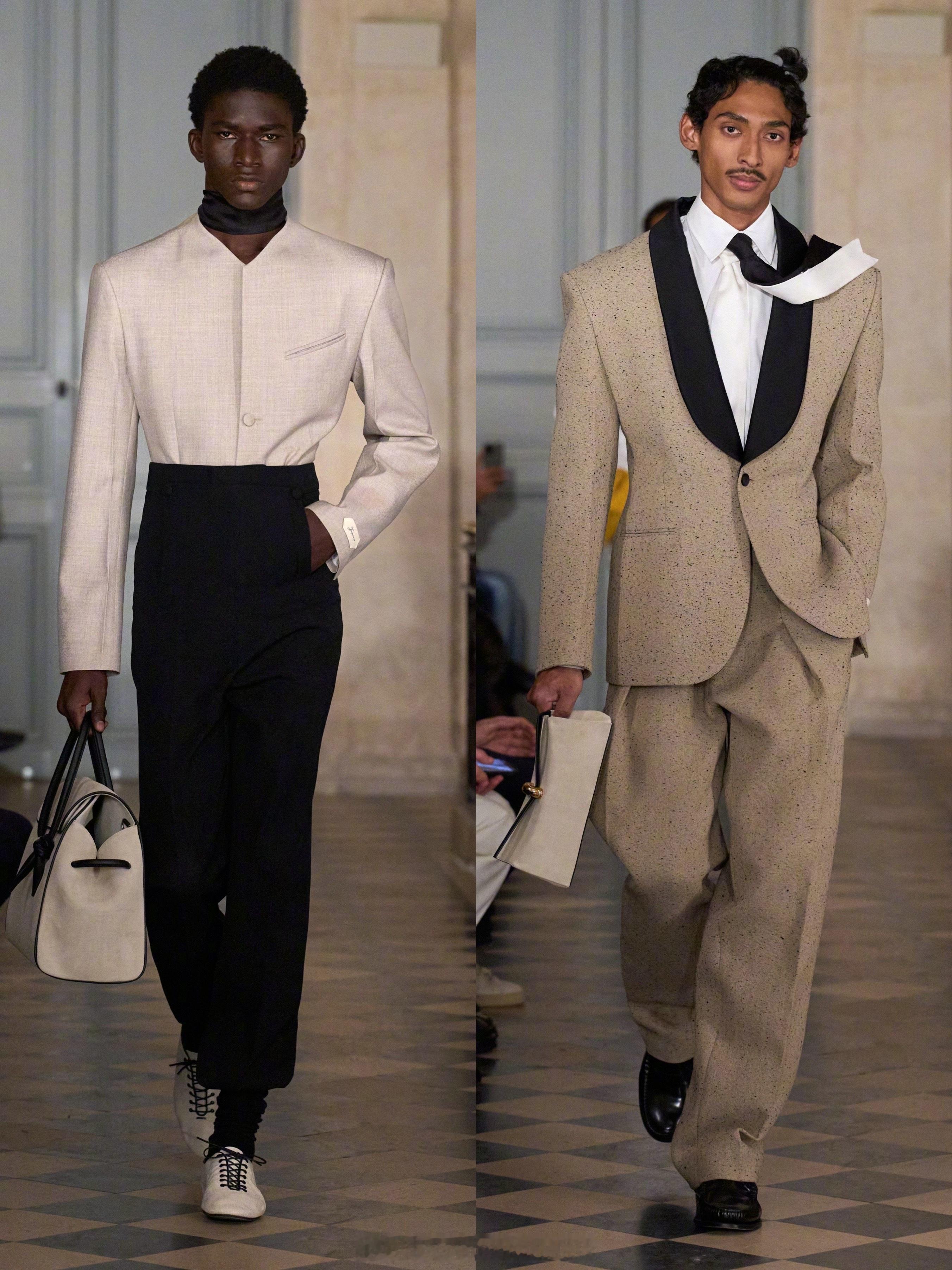 JACQUEMUS F/W 2026融汇80年代的精神、50年代的剪裁和90年代的性感风情,Jacquemus在巴黎男装周 奉上了了优雅而复古的全新系列。沙漏廓形外套与夸张礼帽的搭配,让人产生“他去DIOR做创意总监也不错”的念头。男装的发挥尤为出色,利落克制中透出些细节的可爱。