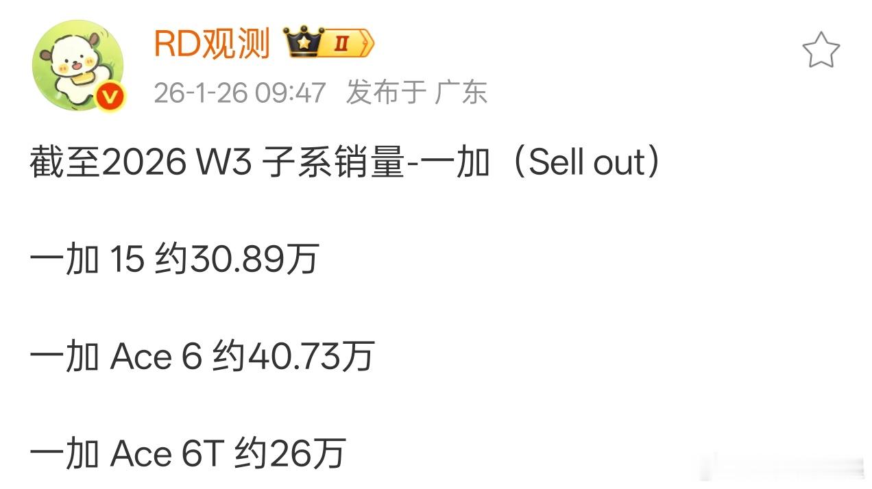 一加Ace6系列卖的相当不错了,已经接近70万,一加15的销量感觉受部分配置降低影响了,但是起售价降低后性价比依然超高的,而且用着还是很舒服的,用过一加15的也可以谈谈感受