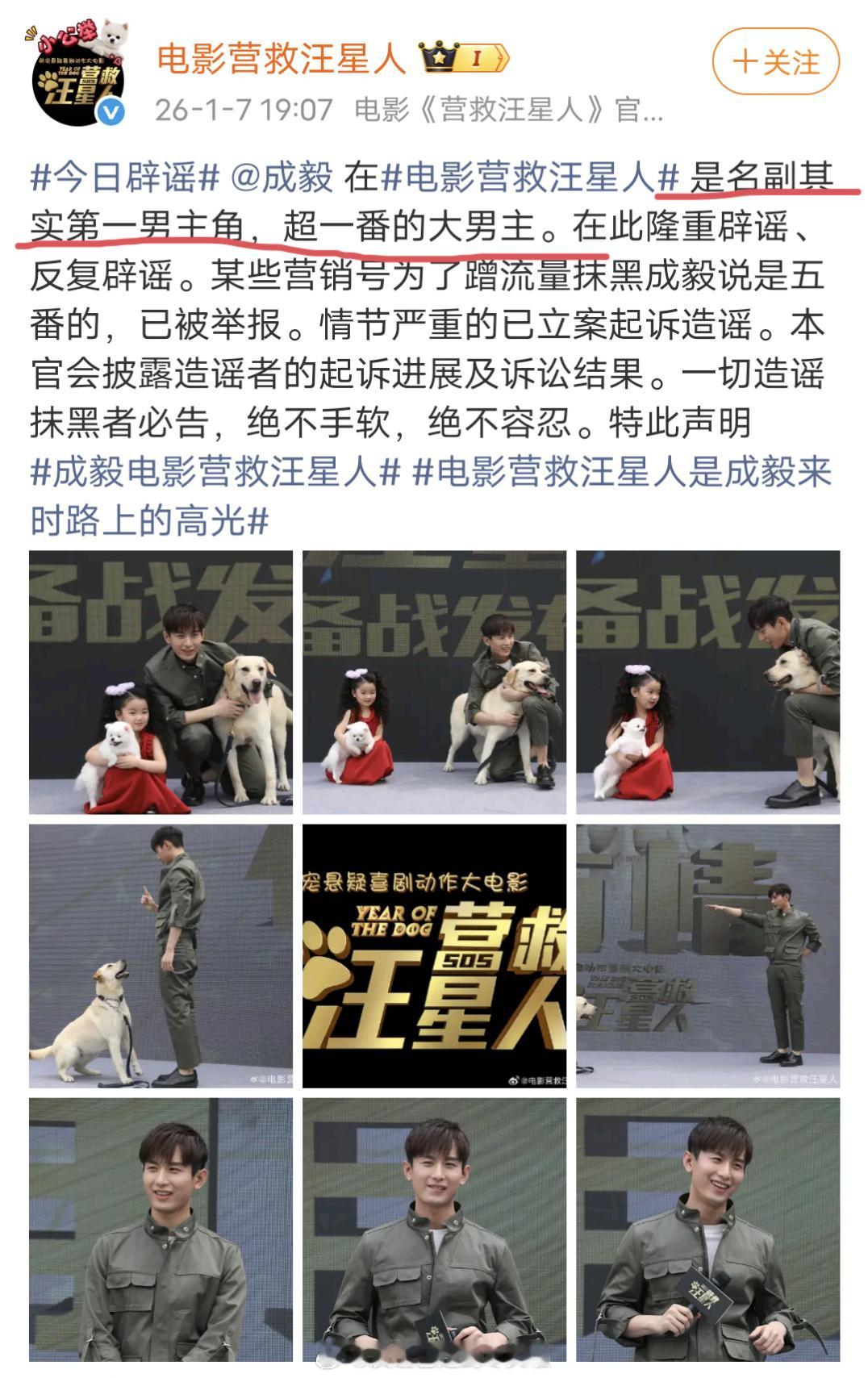 情人节要上的那部《营救汪星人》,成毅本来是七番,但是现在变成了一番单扛片方还强调成毅是名副其实的第一男主角,超一番的大男主。成毅新片定档春节档 春节档