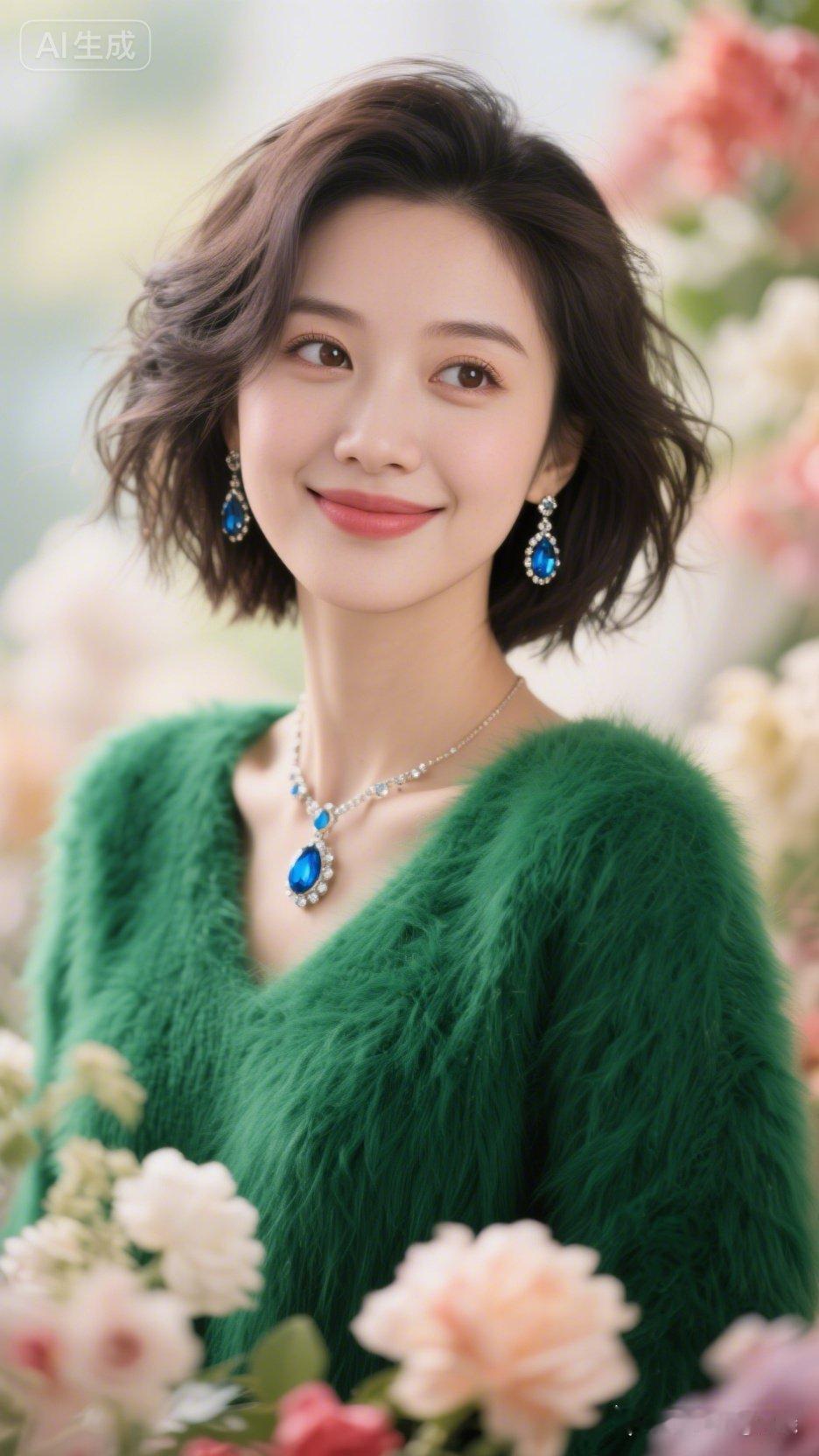 温柔甜美的绿衣少女,搭配蓝宝石耳环,宛如春日里的花朵绽放。