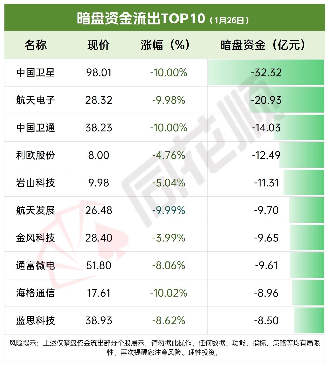 1月26日暗盘资金流出TOP10(1月26日),哪些股票在流失资金? 【暗盘资金流入榜】亨通光电领涨,紫金矿业、白银有色紧随。优刻得-W异动明显,洛阳钼业强势上榜。理性投资,注意风险 暗盘资金热涌,光电有色领涨,个股表现抢眼,投资需理性避险。