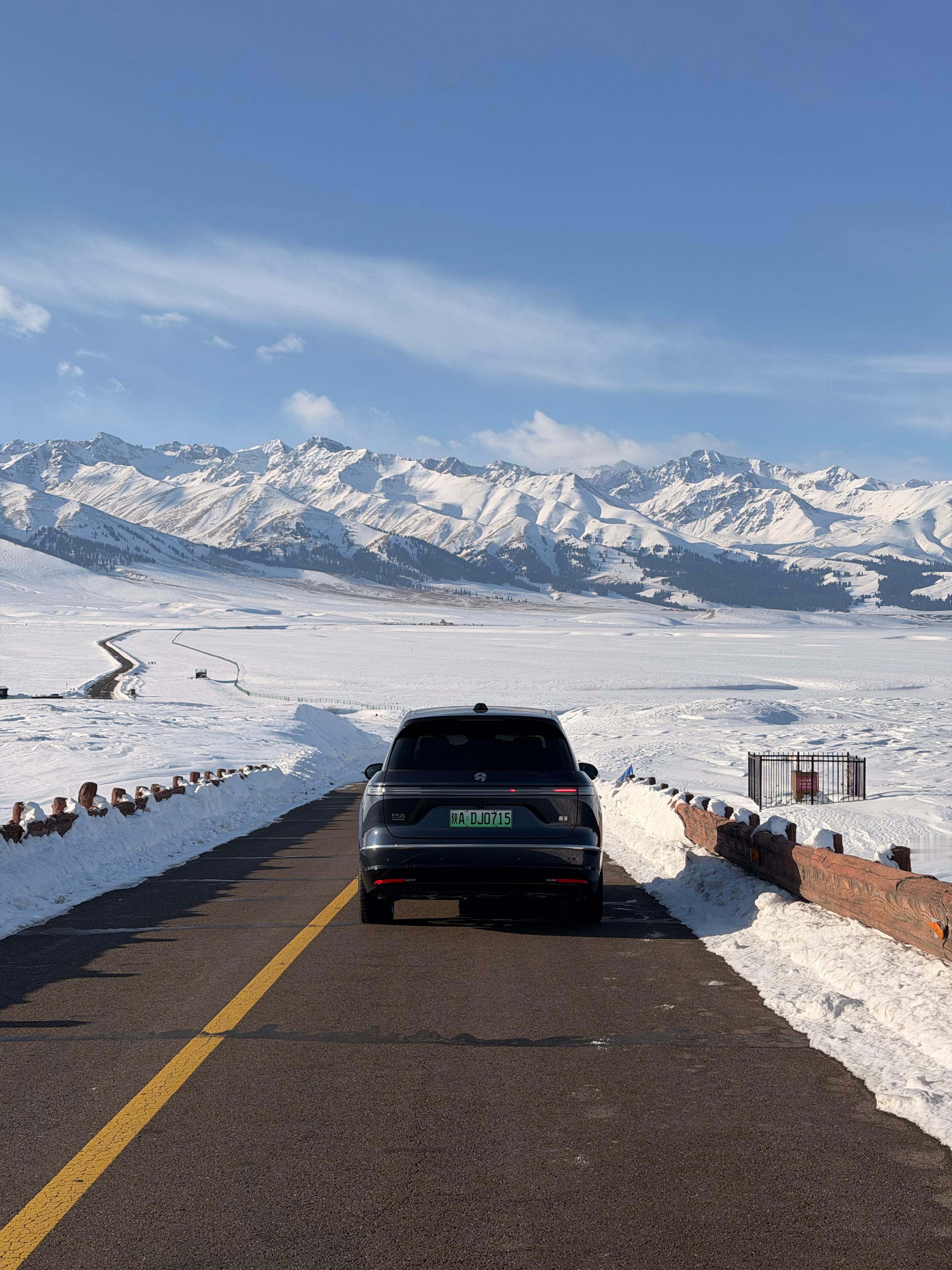 南极星蓝配雪景,绝了蔚来全新es8西安自驾新疆 伊犁·那拉提景区