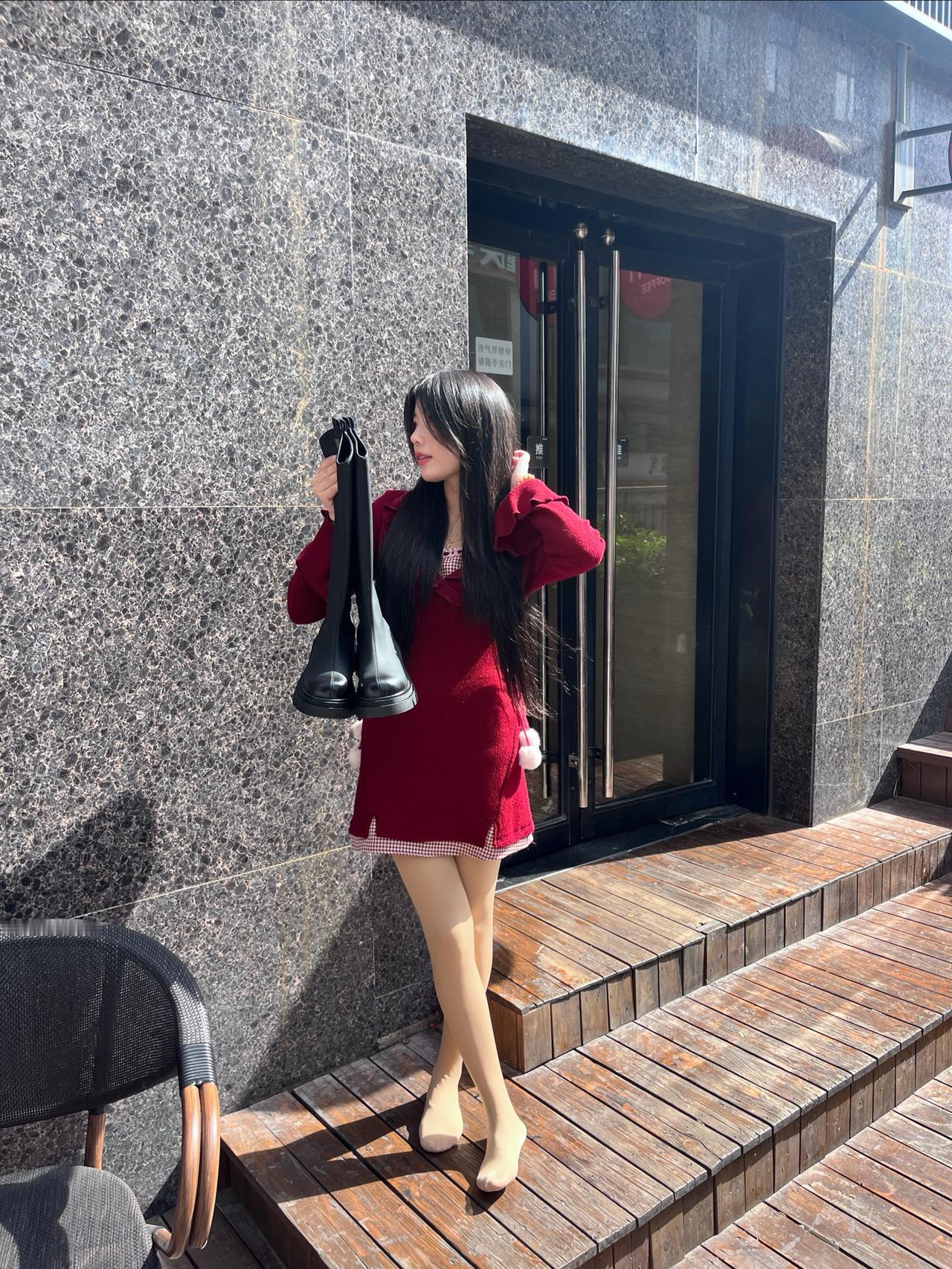 有哪些极简慵懒风格的女装推荐166/100女生的日常换鞋记录|酒红针织裙+长筒靴的秋冬适配感|||今天穿了常穿的酒红针织裙,顺手拿了双37码的长筒靴——这靴是软皮的,靴筒刚好贴腿不晃,厚底还能悄悄拉点比例。配光腿神器穿,刚好把裙子下摆的格纹边露出来,不费劲的搭配,出门喝杯东西正合适。给大家推荐必入长筒靴 厚底长靴