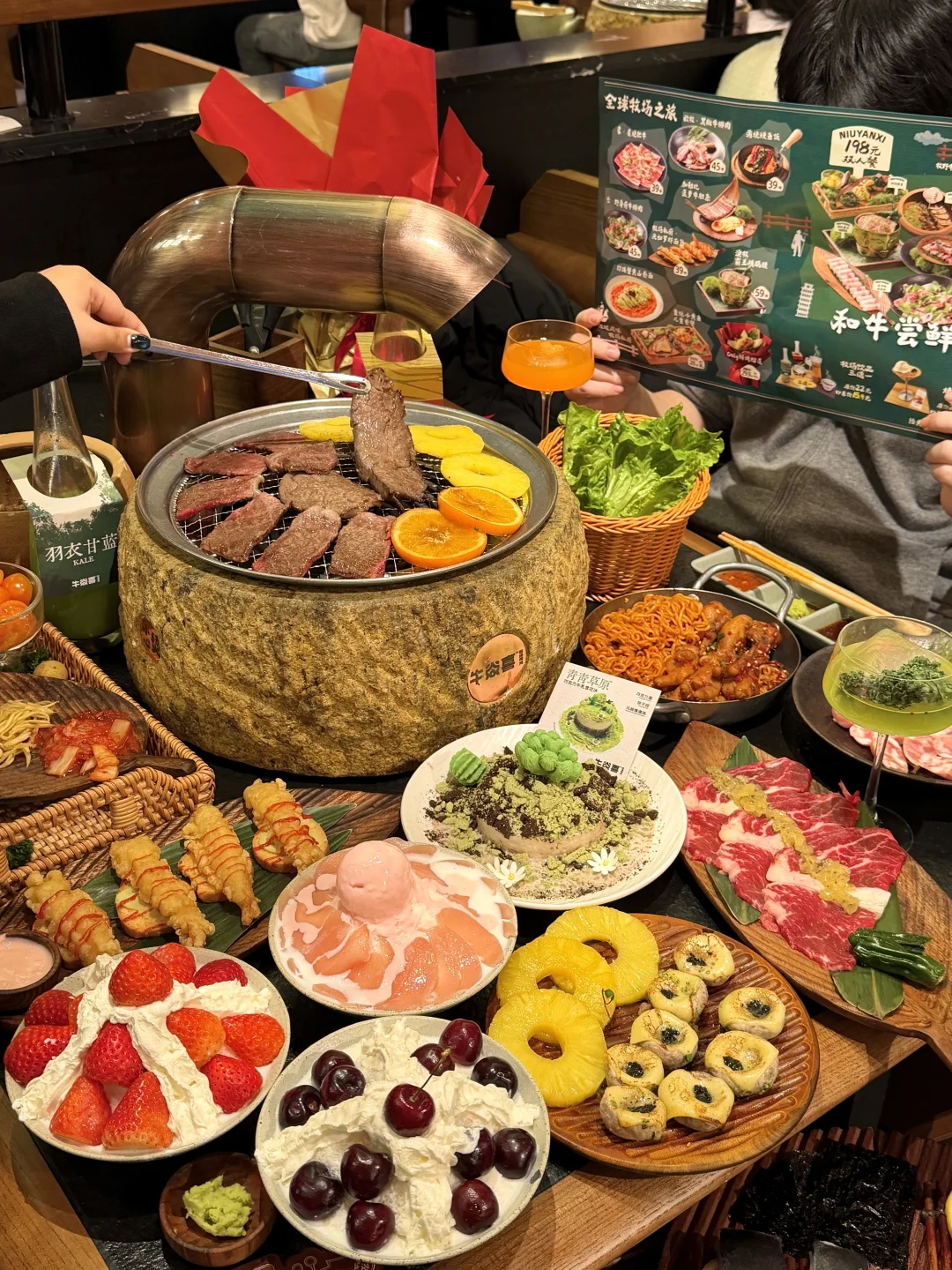 长沙我唯一5刷的烤肉店!! 他家还有草莓、车厘子、桃子雪冰……真的一口惊艳!不敢相信这居然是个烤肉店的水准。。。用的都是新鲜水果,甜而不腻巨好吃 还有和牛黑松露饭,和牛是现烤的~入口即化还会爆肉汁!!他家生意这么🔥部是没有理由的!店里烤肉也有店员烤,根本不需要自己动手!和牛随便蘸点辣椒面就很好吃了😭一定还会带朋友来n刷的!!(牛焱喜)