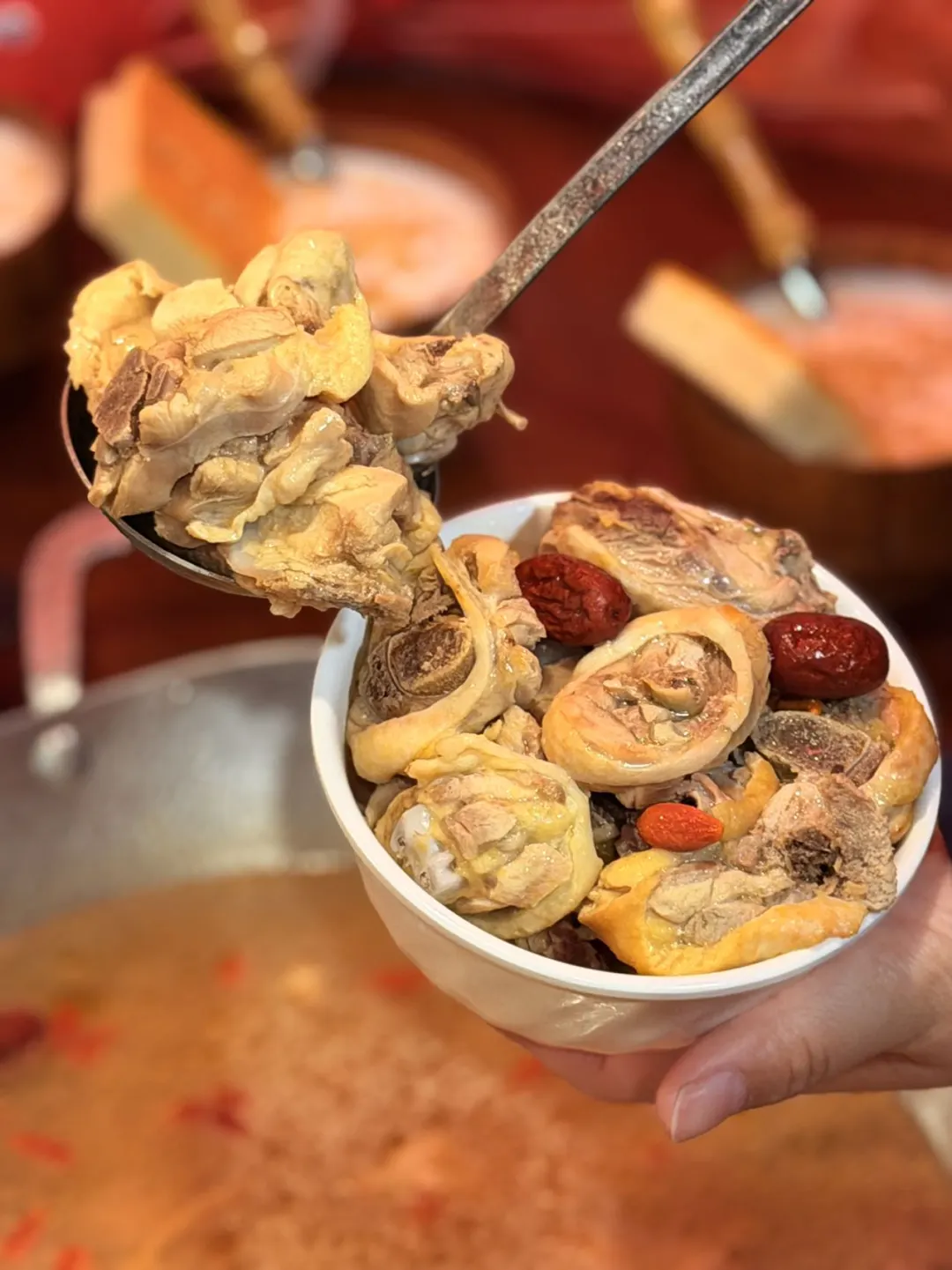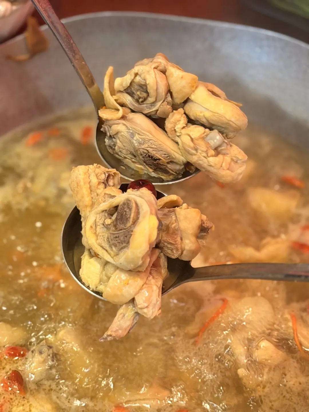雨花客厅新开的药膳鸡火锅,使用百岁山水进行鸡汤现熬,散养清远鸡细嫩鲜美。 🦪乳山生蚝有巴掌那么大 胖乎乎的,蘸调料美滋滋。 沙葱清脆解腻,还有敲虾,入口劲道爽滑,三九天约上好友聚聚,吃得浑身暖洋洋。