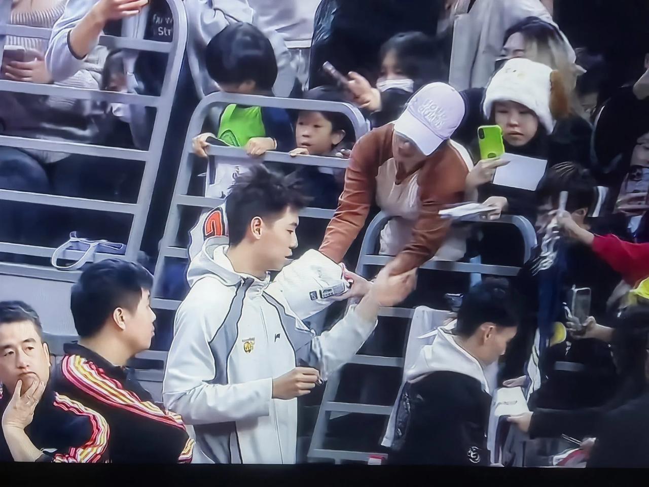 广东宏远Vs天津的比赛马上进行! 不得不说今晚的美女球迷很多啊… 感觉满山遍野都是… 球员们有得忙了… 崔永熙还好脸皮“厚”点… 一一答应了球迷们的签名要求… 杰师傅貌似害羞哦… 头也不回的找到位置坐下了…