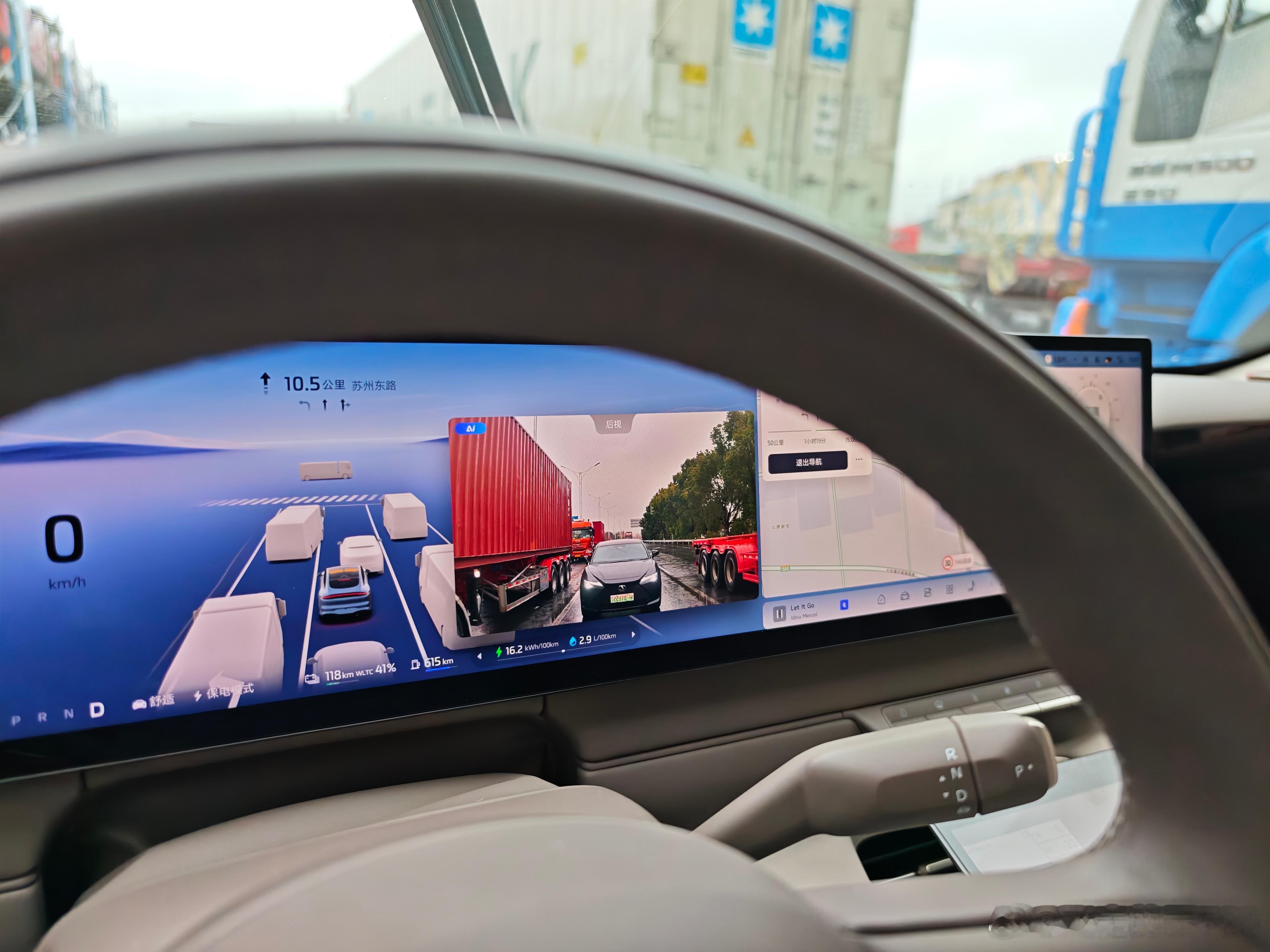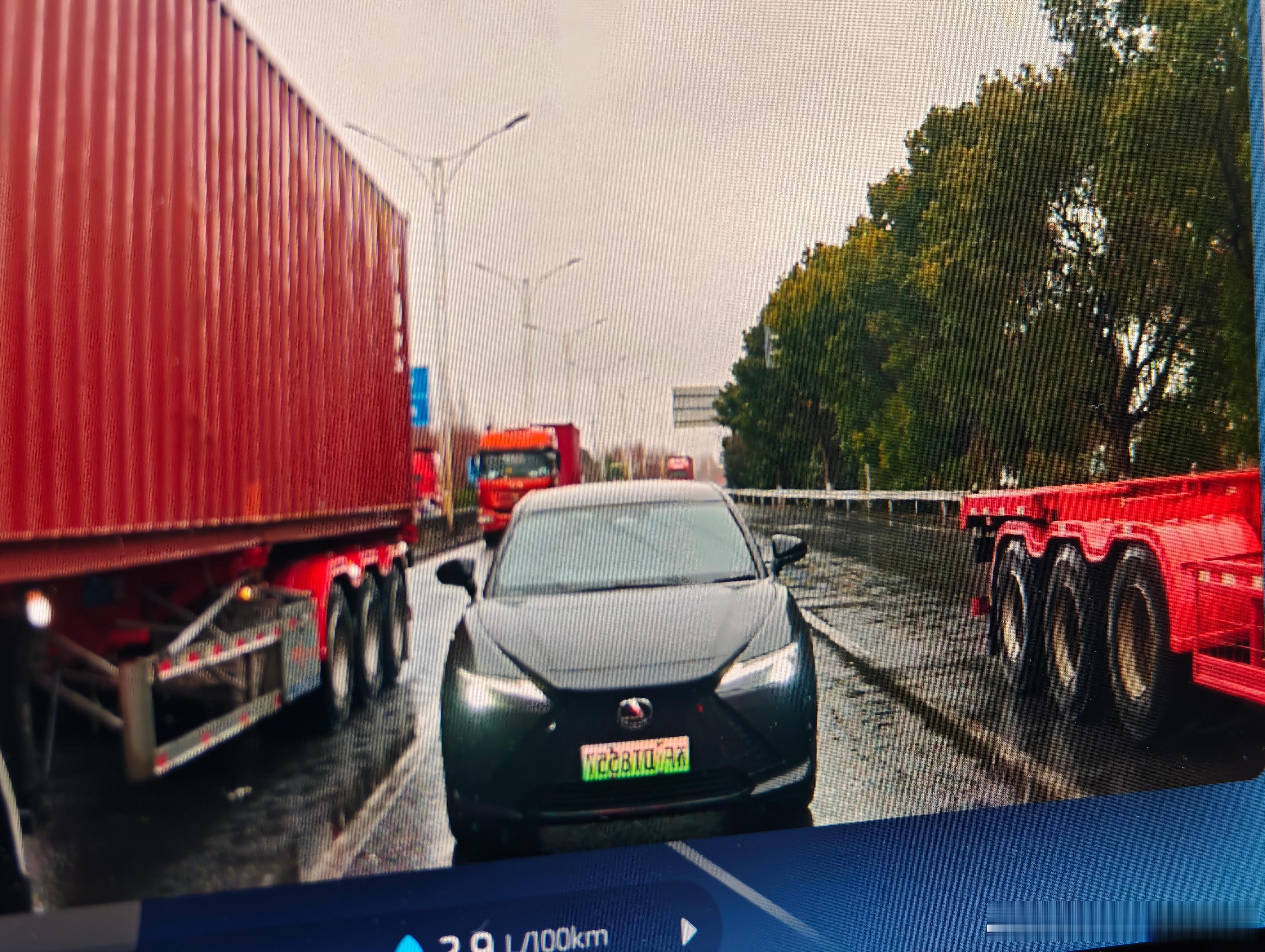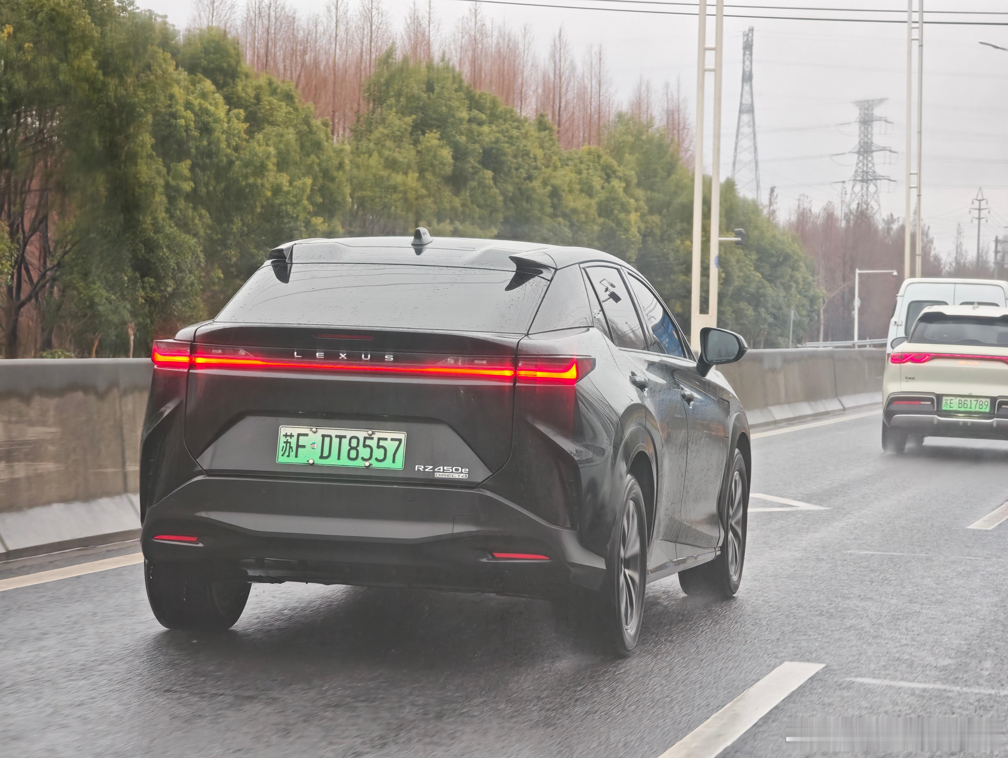 路遇一辆省电神车,雷克萨斯Rz450e智己LS6的方向盘唤出电子反光镜还挺好用的,下雨天清晰度也很好,没有被水滴遮住