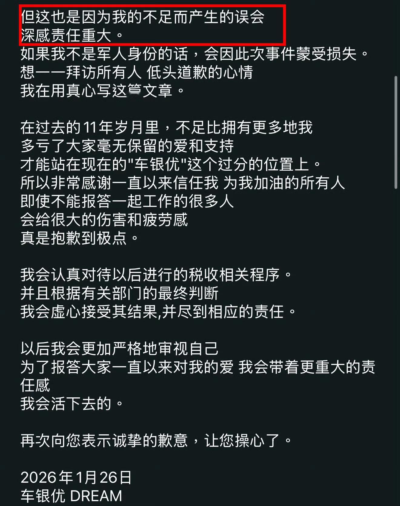 车银优道歉了!车银优发长文道歉车银优承认逃税