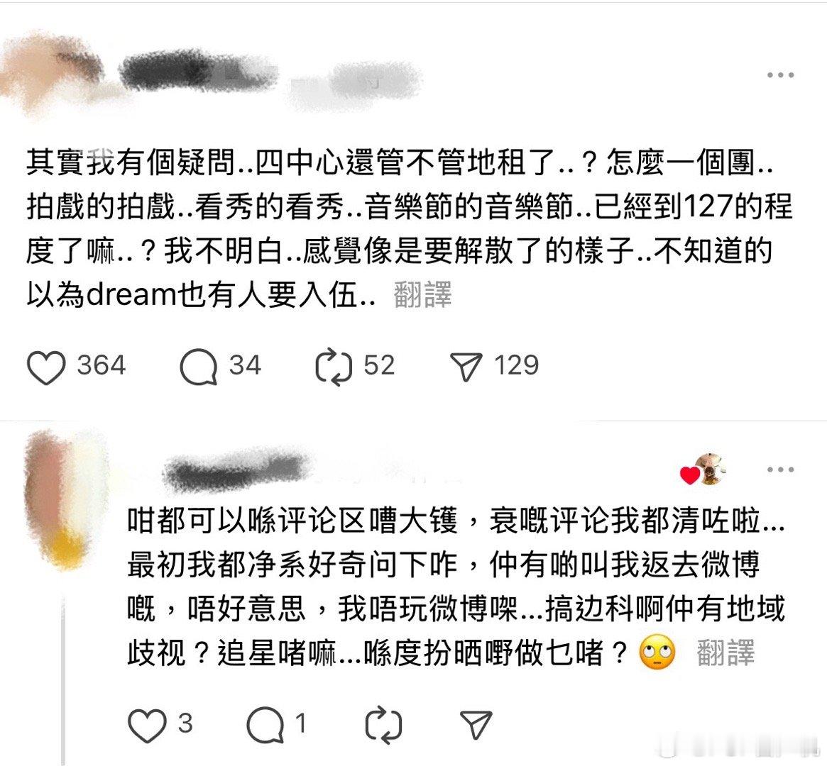 其实我有个疑问..四中心还管不管地租了⋯?怎么一个团..拍戏的拍戏..看秀的看秀..音乐节的音乐节..已经到127的程度了嘛.?我不明白..感觉像是要解散了的样子.不知道的以为dream也有人要入伍