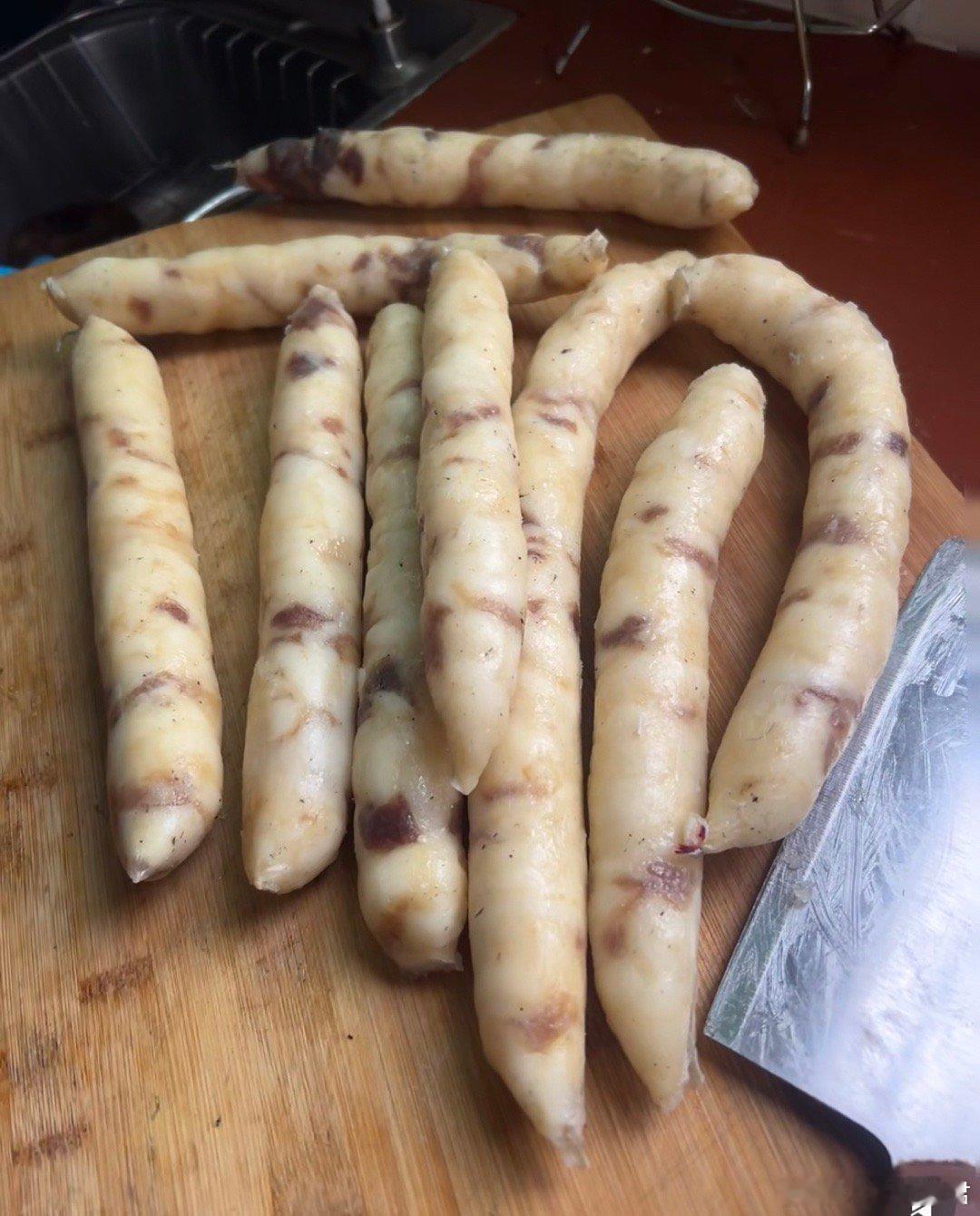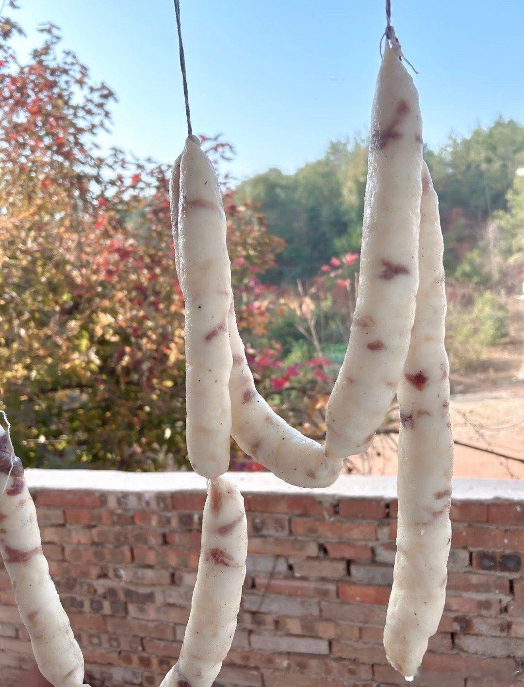 9肥1瘦香肠这白花花的肠子确实不敢吃。有网友说像蜡烛,停电了切一截就可点燃;
