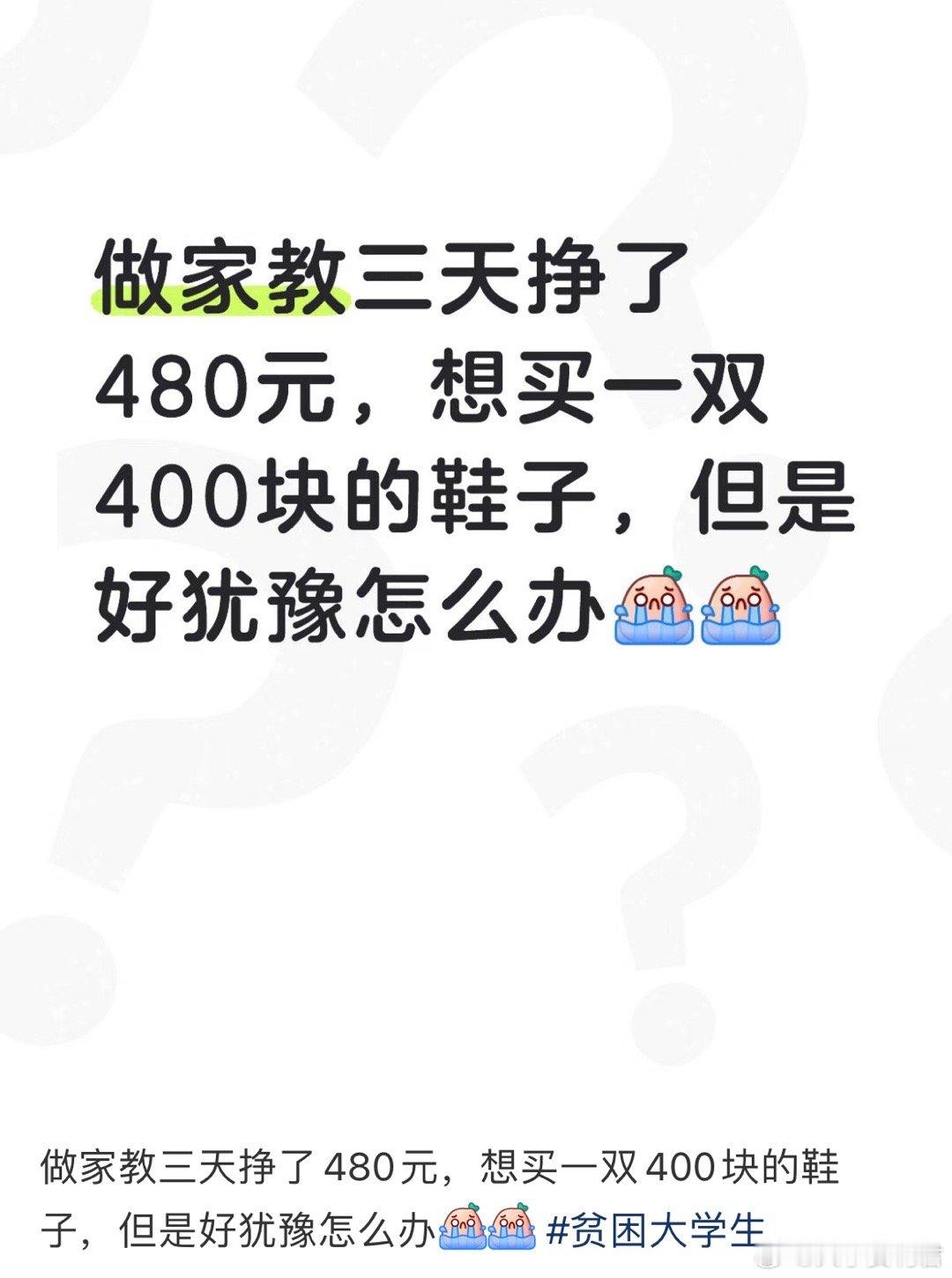 做家教三天挣了480元,想买一双400块的鞋子,但是好犹豫,怎么办