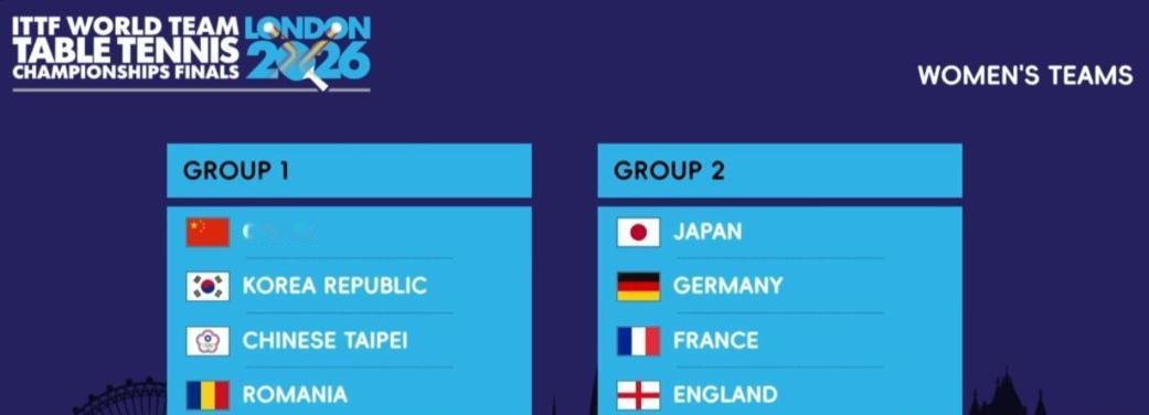 伦敦百年世乒赛抽签出炉, 男团上上签, 第一小组有中国男团,韩国男团,瑞典男团,英格兰男团 第二小组,法国日本队在相遇。 女团中国队和韩国队再相遇, 首轮循环赛中第4小组比较强, 中国香港和中国台北女团都分到了这个小组。