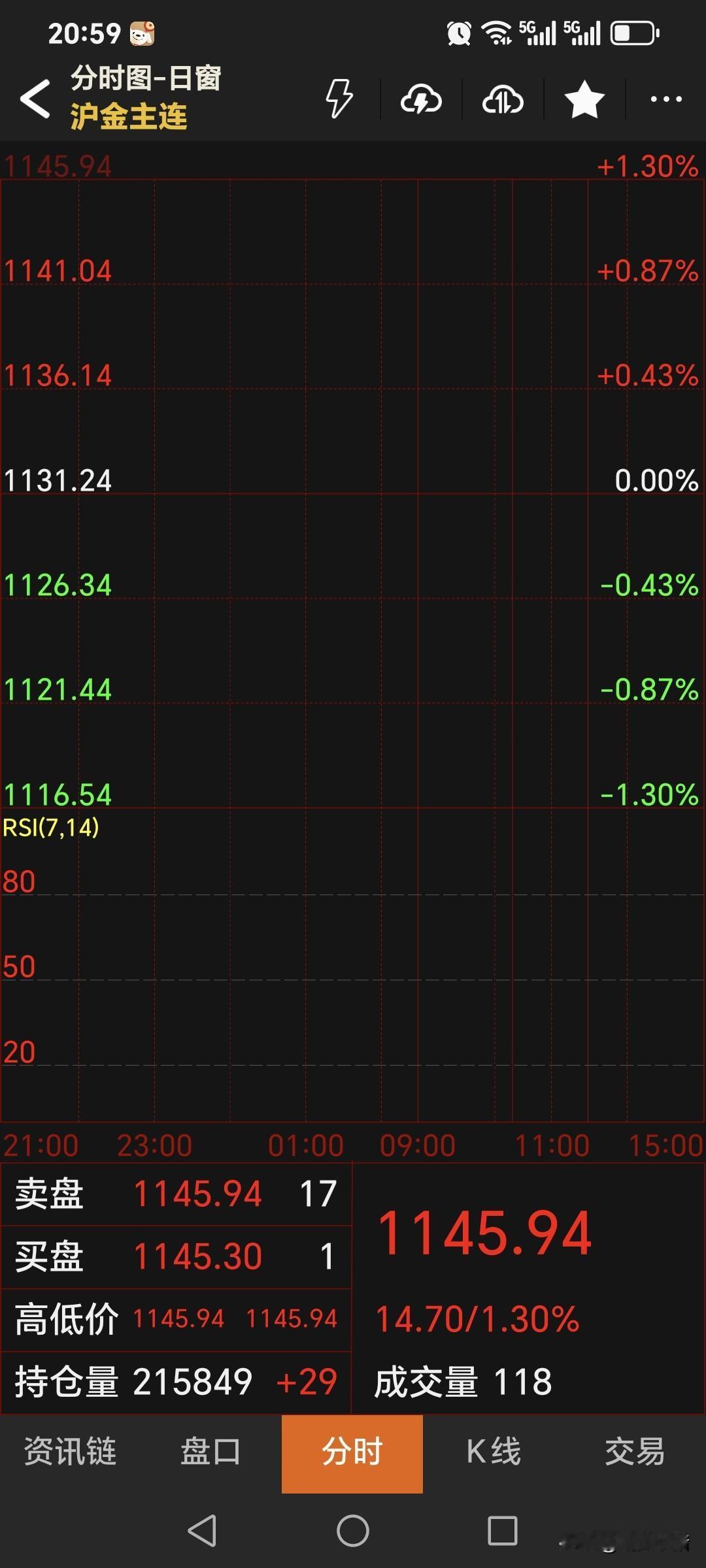 夜盘, 国内黄金期货 如期高开,符合判断。 主力合约开盘1145.94元, 较上一日上涨14.7元。 对于黄金期货, 期货小褚建议关注 上方1150压力情况。 观望为主比较好!