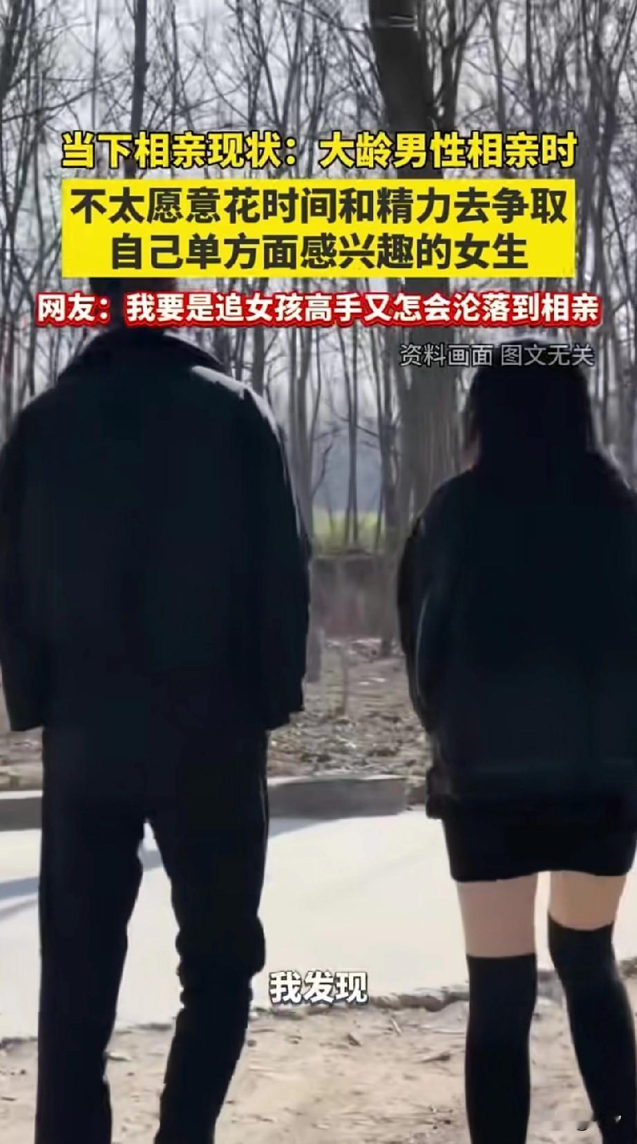 女孩吐槽现在的相亲现状,就是大龄男生不再愿意花时间和精力去争取自己单方面感兴趣的