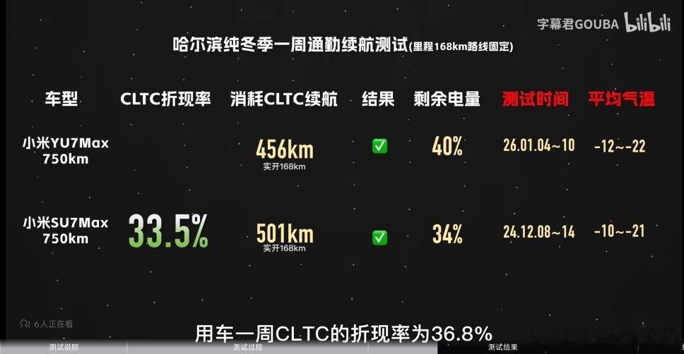 之前常看字幕君改房间装修,没想到最近他在哈尔滨用YU7整了个活零下22℃气温,连续一周通勤,YU7 max电量还剩40%每天白天都要在-15℃的户外冻一天,然后提前开空调,上车的时候车内气温暖暖和和。人是舒服了,但对电量可以说是终极考验了YU7 这次一周用完,电量比去年SU7还要多,小米的热管理技术又进步了极寒天气下,热泵的效率会大打折扣,还会因为整套系统被冻透,冷机启动速度特别慢。小米的热管理系统增加了PTC为极寒供热提供更强性能,还有电机、电控、芯片热量的收集能力。通过AI计算综合获取热量的效率,最终匹配各种热源的能力,快速获得舒适温度,快速为电池提供合适工作温度。电池工作温度合适对电池寿命更油耗,也能更加充分释放电池储存的能量。另外车内的空气控制也有更多新技术,合理匹配内外循环,既保证车内含氧量,又能控制热量对流到车外。让乘客在车内不至于昏昏欲睡,车内玻璃不结霜,还能有更低能耗。哈尔滨的超低气温下,都能体验和续航兼顾,小米YU7不负当时发布会的“冬季续航之王”的目标。