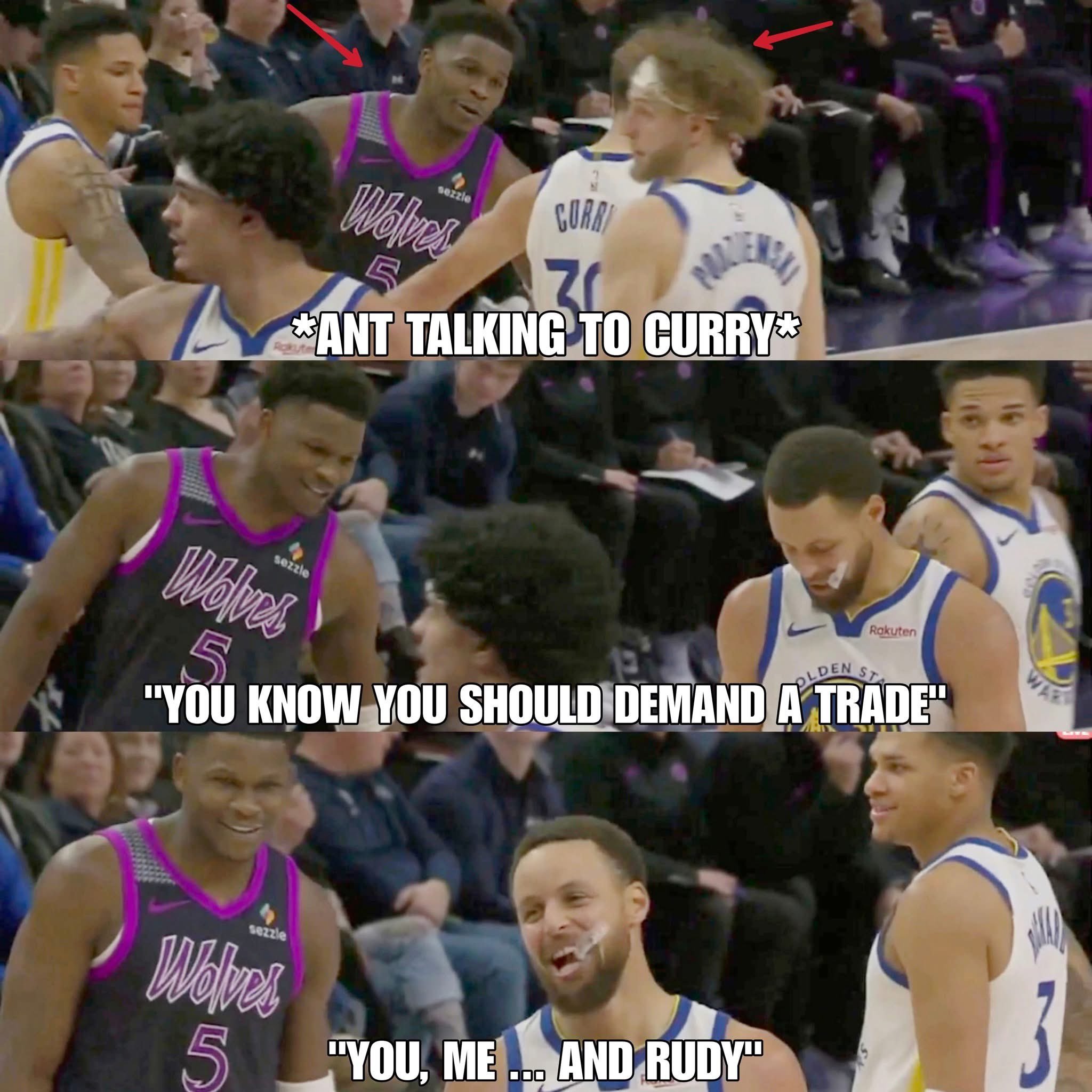 哈哈哈哈哈今天华子和库里在比赛说的话 “ 你应该申请交易 然后 你和我还有戈贝尔组成一队” 给库里听乐了