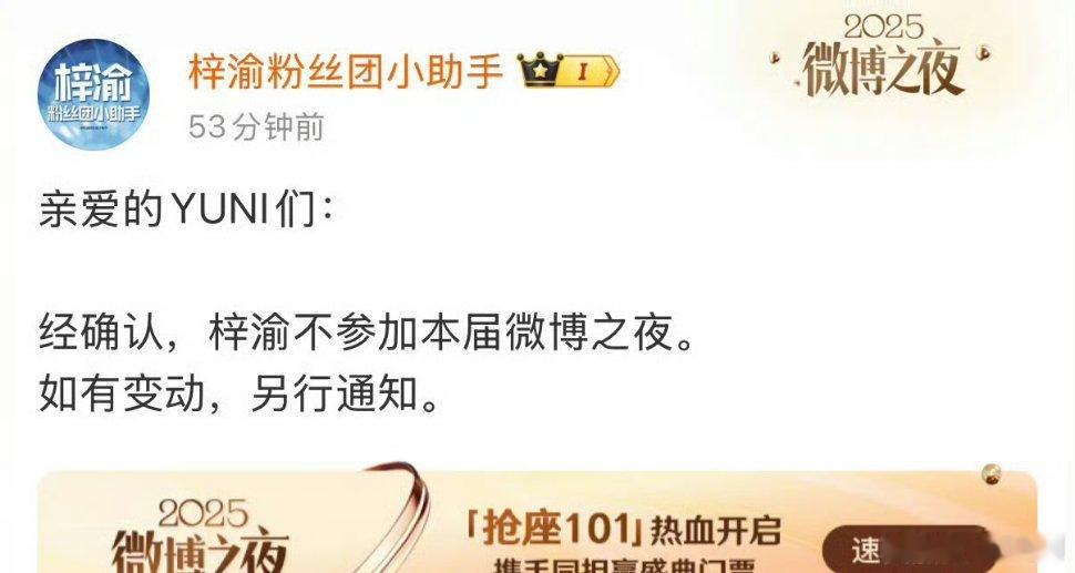 梓瑜官宣不参加《微博之夜》