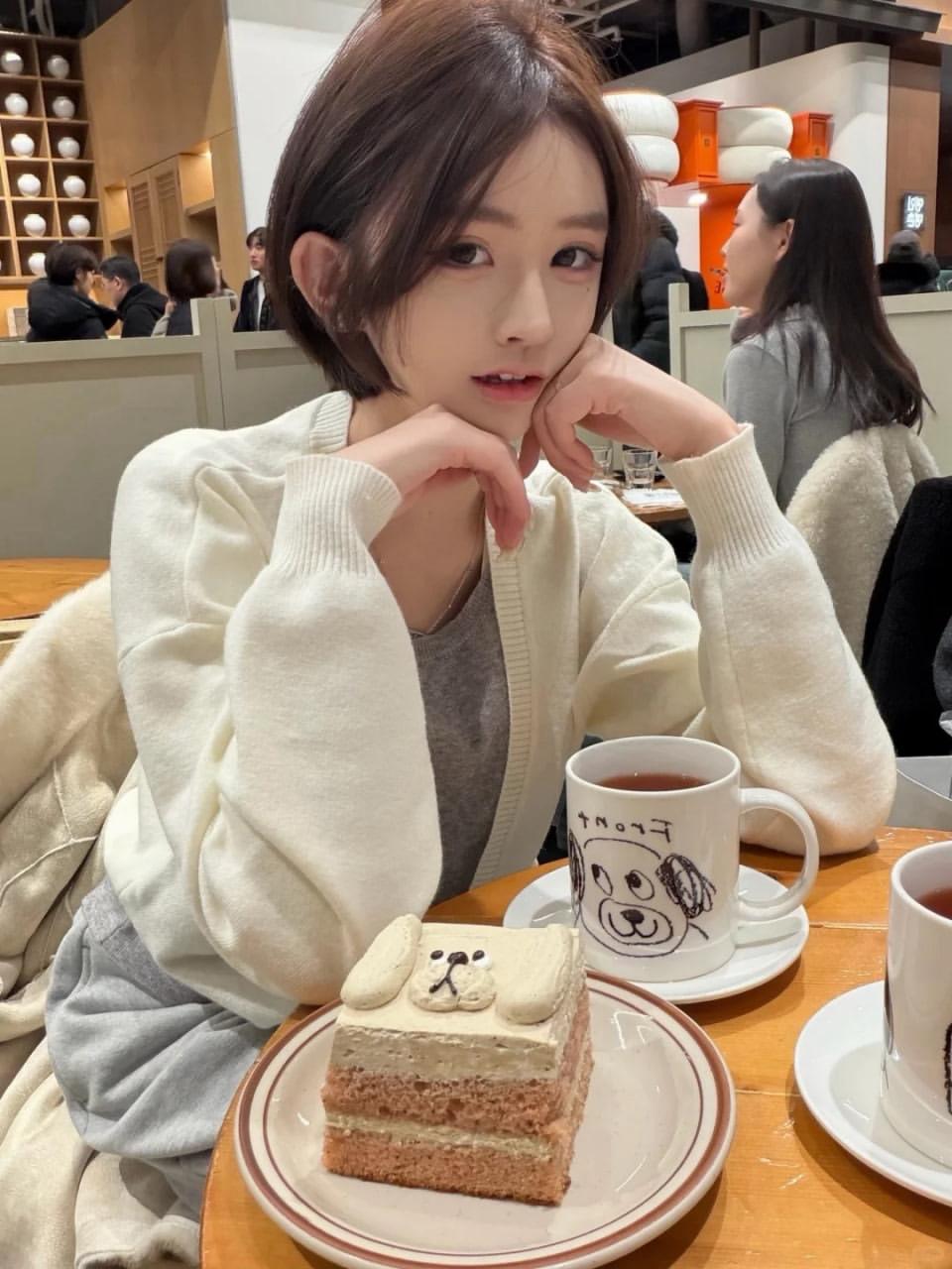 李一桐齐肩短发黑色短裙