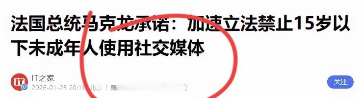 法国总统正式宣布了! 2026年1月25日消息,法国总统马克龙在24日BFM电视台发布的自拍视频中做出最终决定:法国将启动加快立法程序,力争在今年9月新学期开始前全面禁止15岁以下未成年人。使用社交媒体。该法案于1月26日正式提交国会审议。一旦通过,TikTok和Instagram等平台将被要求强制验证用户年龄。违规者将面临高达全球年营业额4%的巨额罚款。 这项禁令的推进速度可以称为“闪电战”。”马克龙在视频中对着镜头直言不讳地说道:“儿童的大脑和情感是非卖品的,也不应该被任何算法操纵。“这一声明的背后隐藏着法国政府的焦虑。法国卫生与安全局2025年12月发布的一份报告披露了令人震惊的数据:90%的12至17岁年轻人每天使用手机上网,其中58%沉迷于社交媒体,其中一半人每天使用2至5小时。更令人担忧的是,许多法国家庭起诉TikTok,称其因让孩子接触不当内容而自杀。这些案件就像刺在马克龙的心上。2023年,法国试图通过“父母同意”法案。结果,由于年龄验证技术没用,跨境平台不配合,最终成为一张白纸。这一次,马克龙直接选择了“一刀切”,同时推进高中校园手机禁令。显然,他吸取了教训,想要彻底堵住漏洞。 从表面上看,法国正在效仿澳大利亚,澳大利亚刚刚于2025年12月实施了全球首个针对16岁以下儿童的禁令,并在一个月内禁止了470万个未成年人账户。但更深入地说,这是马克龙对数字资本的积极宣战。欧盟的《数字服务法》最初要求平台加强自律,但现实情况是,各大科技巨头依靠“无限滚动”和“即时点赞”的令人上瘾的设计,利用青少年作为流量提款机。法国79%的家长支持这项禁令,这给了马克龙信心。他的一句“无论是美国平台还是中国算法”,实际上是对全球科技巨头的喊话:法国不会用下一代的心理健康来换取GDP。睡眠不足、焦虑和抑郁以及网络欺凌这些由社交媒体引发的“数字瘟疫”,给法国青少年的心理健康亮起了红灯。马克龙需要使用最原始、最有效的方法--物理隔离,为儿童建立防火墙。 未来几个月,这场“数字防御战”注定会硝烟四起。平台不可避免地会以“隐私泄露”和“技术不可行”为由进行反击,青少年也会想方设法使用VPN翻墙。但可以预见的是,九月开学后,法国校园里有头脑的人将会少得多,课堂上眼睛心不在焉的学生可能会再次关注黑板。该禁令可能会引发连锁反应。英国已表示有意跟进,欧盟层面也正在制定统一标准。马克龙正在押注民意和选票会站在哪一边。当保护未成年人的道德制高点与科技巨头的商业利益正面碰撞时。 在我看来,马克龙的"一刀切"看似粗暴,实则是对数字时代 parenting(育儿)困境的清醒回应。现在的家长哪个不是天天和孩子为手机斗智斗勇?你设置屏幕时间,孩子能破解密码;你没收手机,他能用平板;你断网,他去蹭邻居WiFi。单个家庭对抗拥有千万工程师的算法帝国,就像拿着木棍挑战坦克。法国政府这次是用公权力给家长"撑腰",把"监护责任"从家庭层面上升到国家层面。那些担心孩子"社交孤立"的声音,其实是掉进了平台设置的逻辑陷阱——真正的社交应该发生在操场、社区和面对面的眼神交流里,而不是在虚拟点赞和滤镜自拍中。澳大利亚实施禁令后,确实有孩子转向小众平台,但这恰恰说明需要全球协同监管,而不是因噎废食。更值得深思的是,当法国在保护孩子远离算法陷阱时,我们的下一代还在被"短视频茧房"层层包裹。马克龙的禁令是一记警钟:未成年人的大脑发育不该成为科技巨头的"原始股",他们的注意力也不是待价而沽的商品。这场关于数字主权的争夺战,关系到每一代人的精神家园。 你觉得这种"一刀切"的禁令能挡住算法的侵蚀吗?评论区聊聊你的看法。