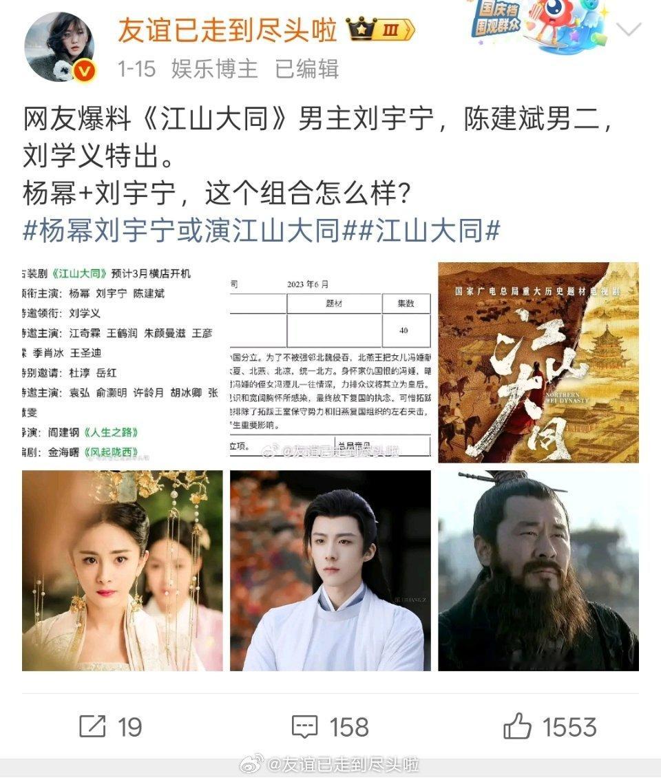 刘宇宁直播辟谣,没接《江山大同》