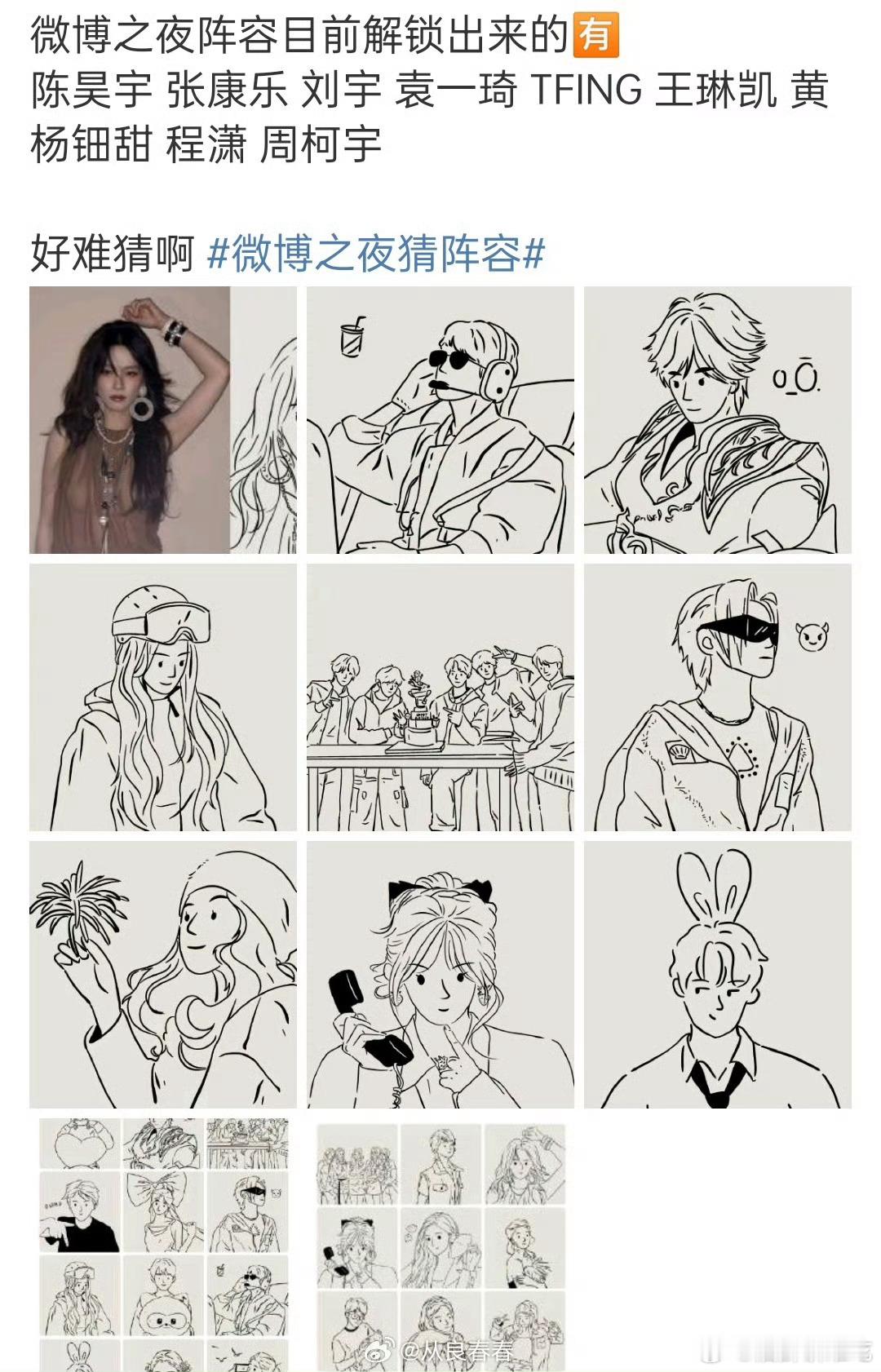 微博之夜阵容目前解锁出来的有陈昊宇张康乐刘宇袁一琦TFING王琳凯黄杨