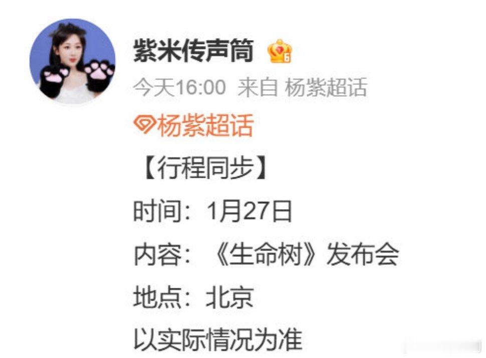【二胖发布】生命树明天开发布会杨紫方预告《生命树》27日将在北京举办发布会!大家