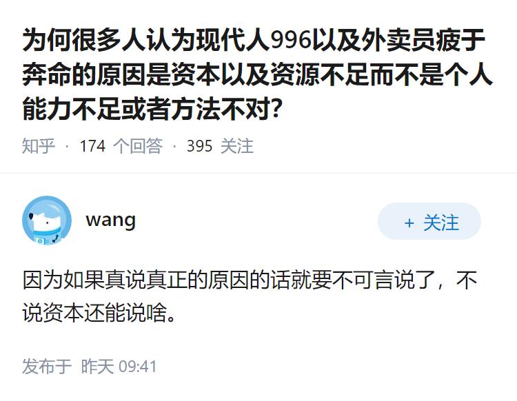 为何很多人认为现代人996以及外卖员疲于奔命的原因是资本以及资源不足而不是个人能