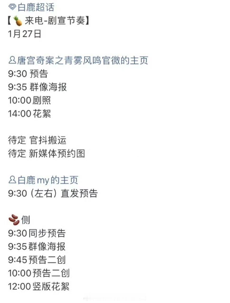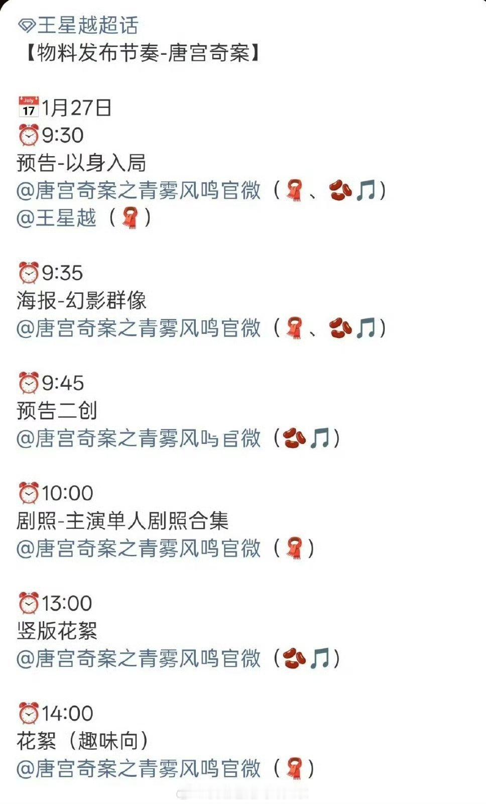 白鹿王星越《唐宫奇案》明天新物料官宣,传说1月31日上线,这是要开启剧宣吧,期待