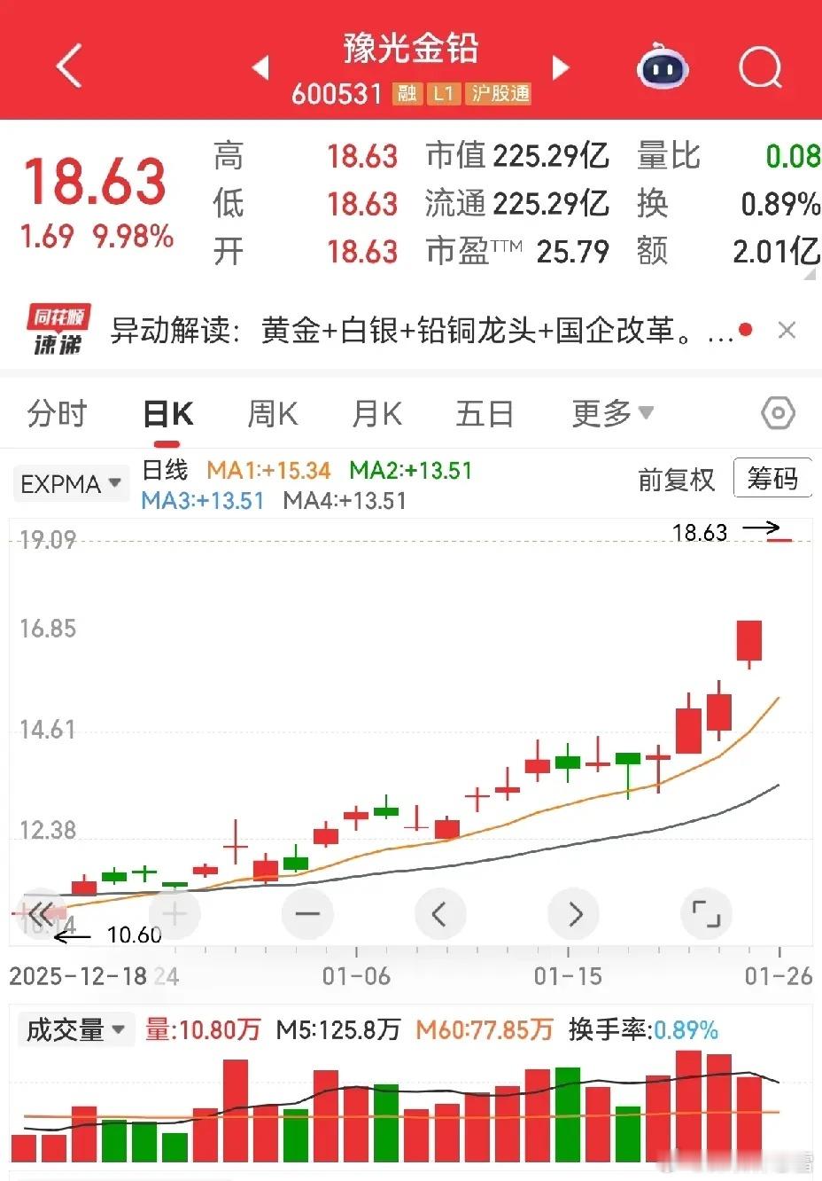 双针扎底形态持续验证中,选对标的真的越拿越香!豫光金铅稳稳连板,金瑞矿业再收中阳