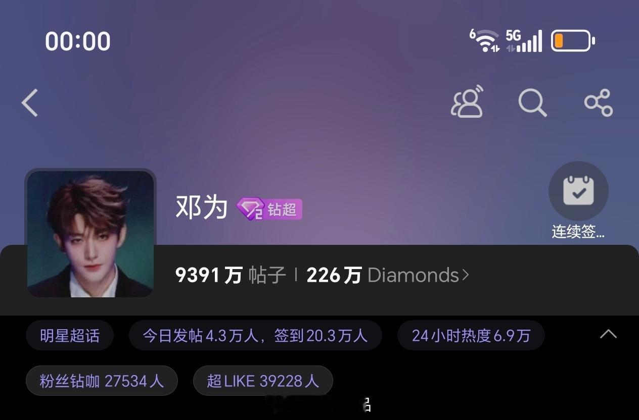 邓为超话昨日发帖4.3万+,超like3.9万+邓为的人气夯爆了,钻石们的战斗力很强,牛比