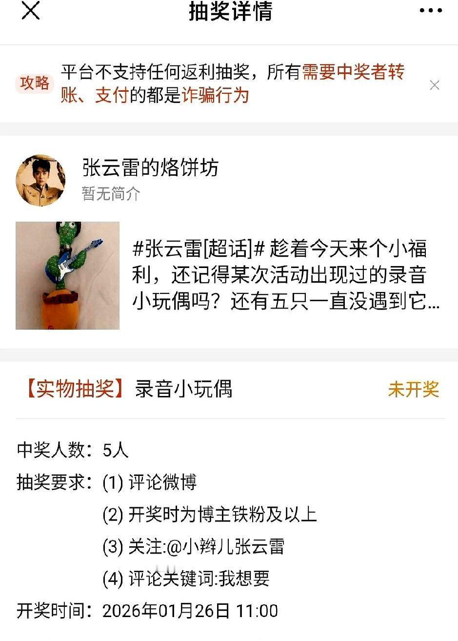 听说了吗?张云雷搞了个活动,叫“烙饼坊”开奖。 听着挺大阵仗,结果奖品就五个。这事儿就有点意思了。 所谓“烙饼坊”,不是真开店卖饼。是他粉丝圈的黑话。张云雷出新歌、发动态,就叫“出新饼”。这个抽奖,说白了就是他生日演唱会期间,专门给花钱买票、买歌的铁粉搞的内部福利。闲杂人等,靠边站。 他粉丝也确实猛。为了给他过34岁生日,人家直接在34个城市搞起了公益应援,给乡村小学捐音乐教室。 这哪是追星,简直是组建了一个高效的民间社团。这帮粉丝的行动力和钞能力,真不是盖的。