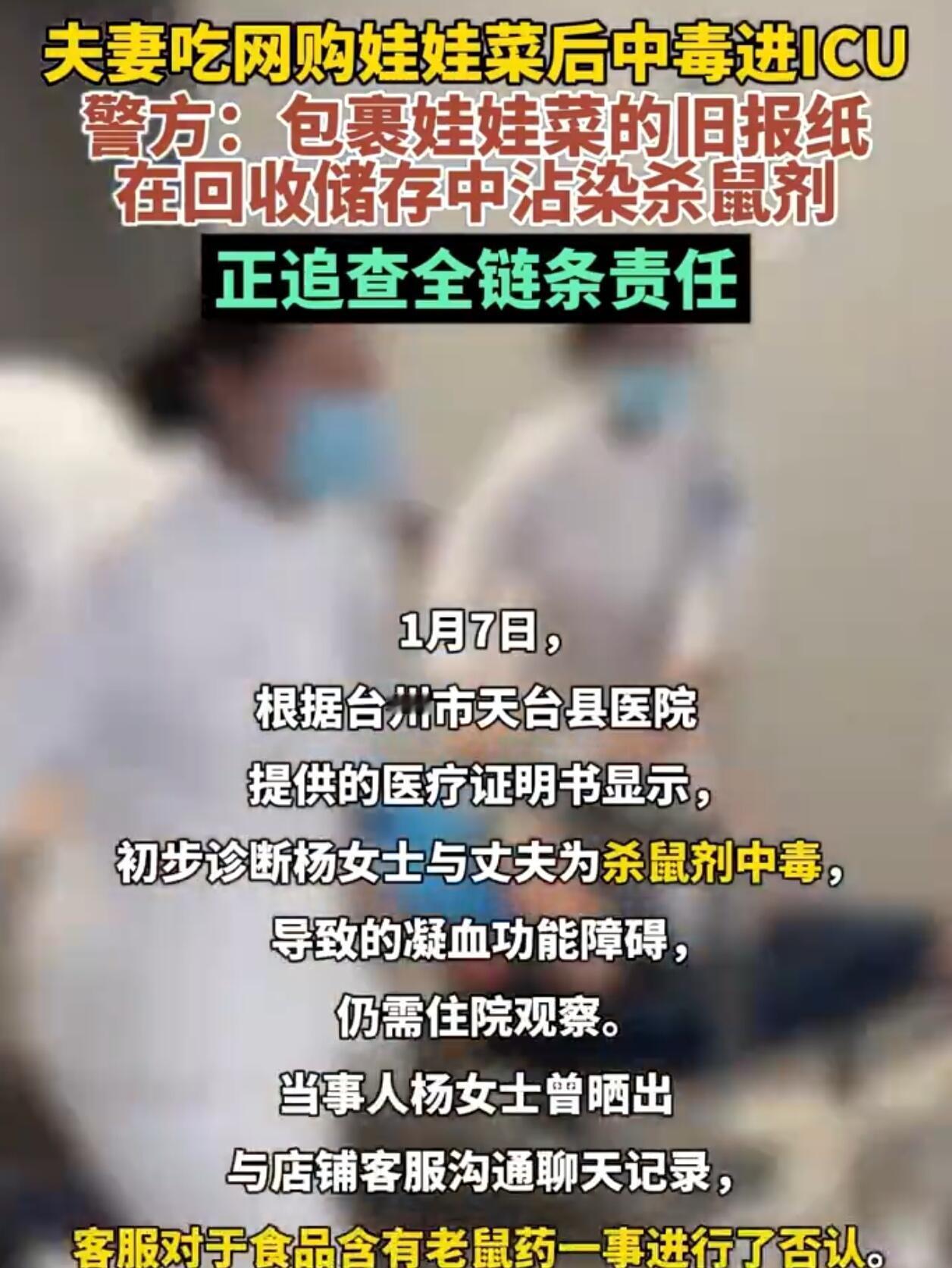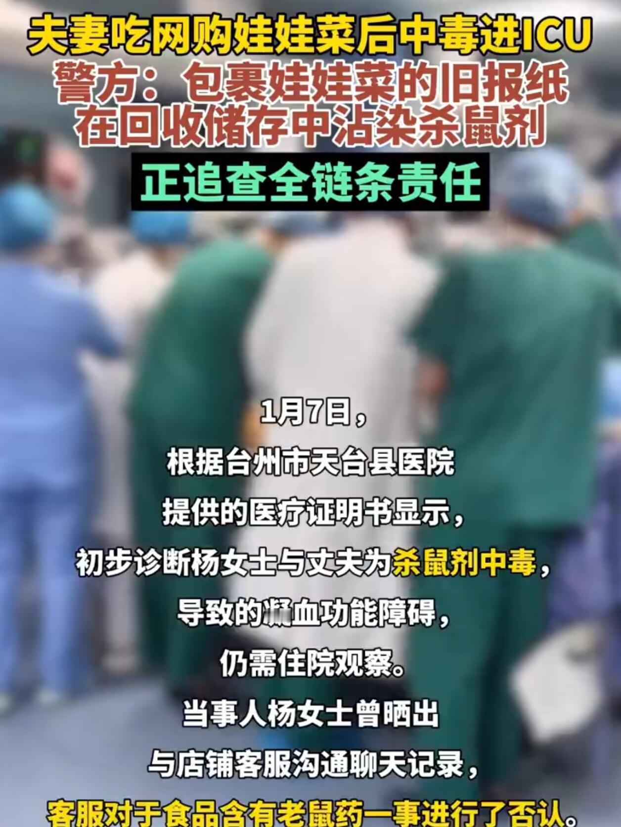 最近台州出了件挺吓人的事,一对夫妻网上买了菜,吃下去结果中了毒,直接送ICU抢救