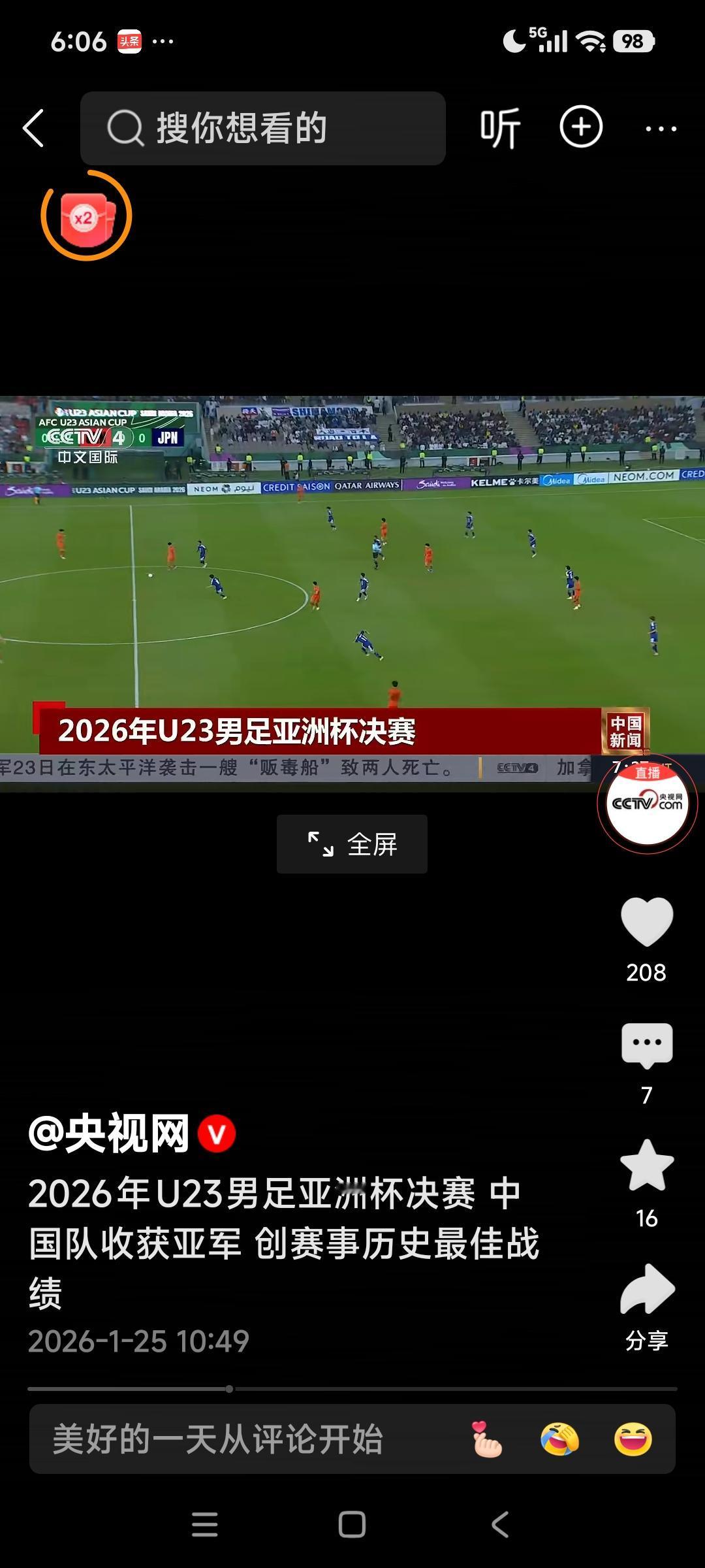 这一成绩创造了中国队参加U23亚洲杯历史的最佳战绩,也是中国男足国字号球队时隔22年再次晋级洲际赛事决赛。此前中国队从未在该项赛事小组赛突围,此次能获得亚军是巨大的突破,书写了中国U23足球的新篇章。 加油国足小将们,你们是最棒的国足队!虽然只获得了亚军可失败是成功之母,望你们总结这届的经验教训,改进不足,继续创造中国足球神话,勇夺冠军! (图片全部来自网络侵删)