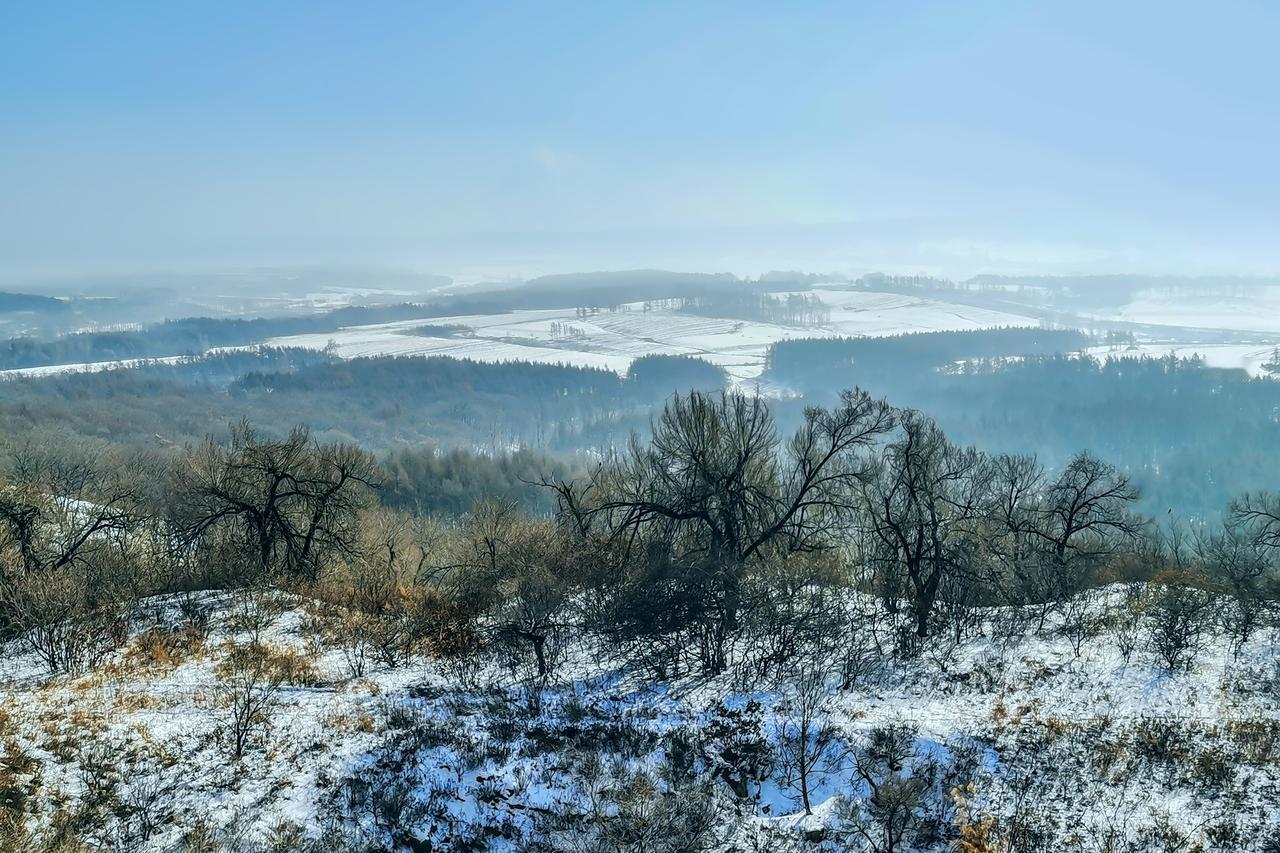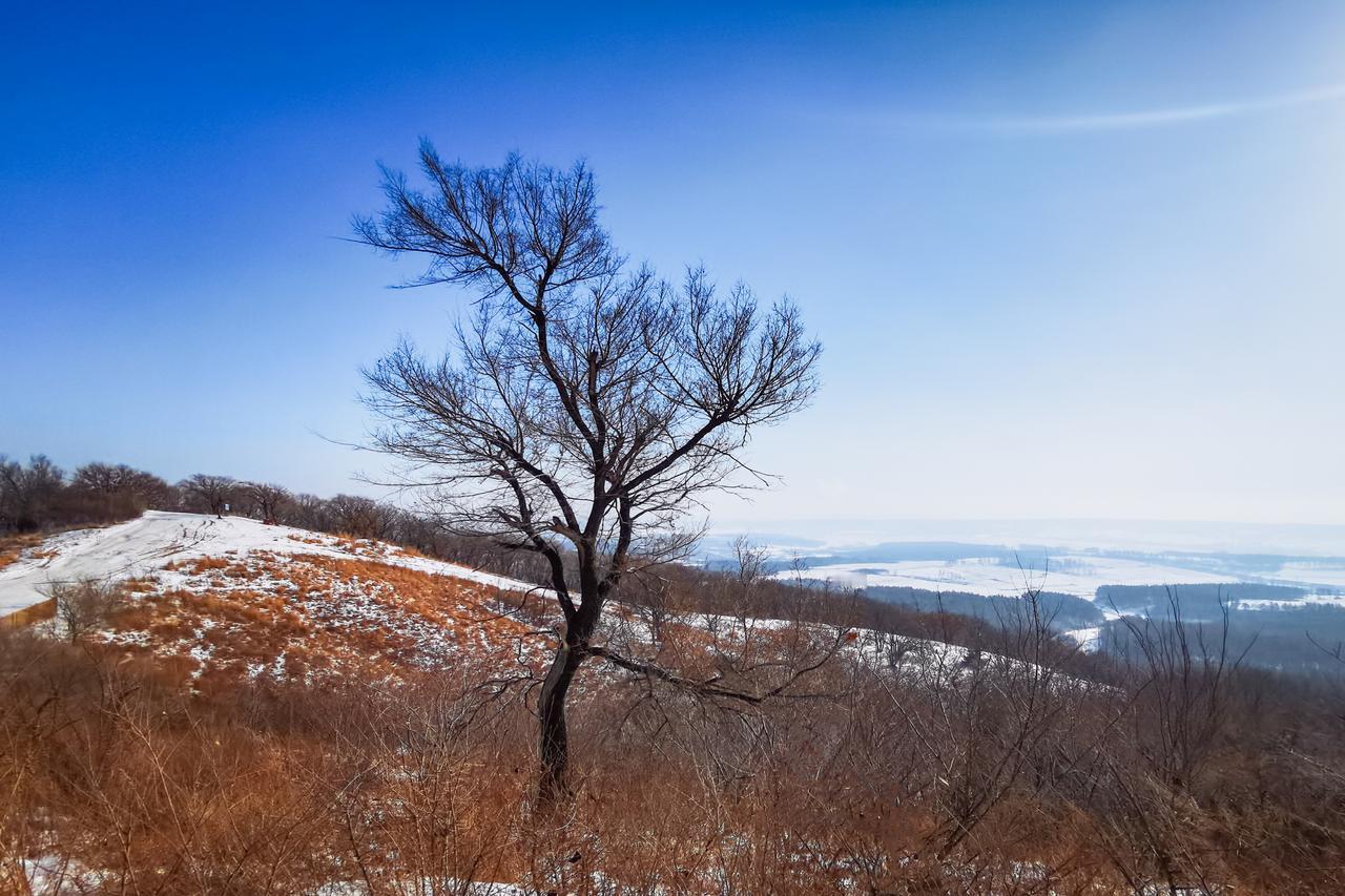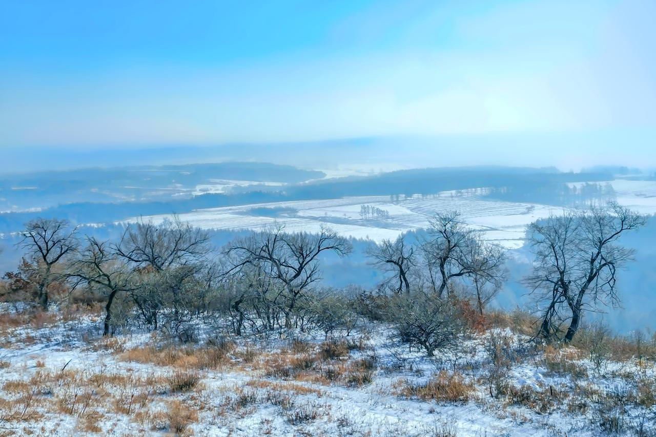 登高望野 城外山雪积厚,小径叠满足迹,北而南曲弧而上。左岗平缓,右坡陡立,柞林静寂,树梢轻颤,零下二十多度的清寒与初阳暖意相融,酿出冬日特有的清宁。 林野如洗,厚雪覆地,偶有细碎兽印,浅缀素白雪笺,灵动了岑寂。柞树枝桠低垂,数簇枯叶闲悬,初阳斜照,便在雪色间泛出温润霞红,与松枝的苍翠相对,红得沉静,绿得澄明。石头上有游人投喂小米,几只小鸟正低头啄食——灰翅墨边,腹羽如雪,眼周白毛轻颤,黑目灵动。人近则惊飞,留下憨态余影。老柞并肩而立,枝干虬曲,皴裂的树皮凝着岁月静美。 攀至山顶,抬眼间天地豁然开阔。脊走东西,南、西视野辽远,坡接平原。唯上午南望逆光,反令万象轮廓柔如晕染。极目远眺,田野覆雪如素帛;远林淡墨轻勾,隐隐绵绵;村庄偶现,像是嵌在林雪之间的静默注脚。极目处天地相接,淡蓝与素白融成一道弧,再无分际。近处有孤树三两,枝桠向空舒展,瘦骨凝霜,虽寂寥,却因游人常驻足留影,成了风景里的风骨。 山顶微风拂过,寒冽中带着雪的清润,不闻半分市喧。空气清冽,雪气与枯草香渗入呼吸,肺腑如涤。立于山顶,只觉胸中被这无边的旷远填满,目之所及,尽是未凿的天真。尘世的局促与烦杂,在这一刻的苍莽里悄然消融。 登高望野,望的何止是山河万里,更是心随天地一同舒展的通透。大雪覆盖的天地,以最素朴的姿态,捧出最纯粹的深邃。雪落无声,山川默然,却以浩渺的格局抚慰人心。人立于天地,虽如沧海一粟,却可在这一刻的澄明中,暂忘尘嚣,得养内心。 最美的风景,就在这登临之际那一眼豁然与心境的悠然舒展。心有山海,不惧岁月清寒;目及苍茫,方知天地本宽。