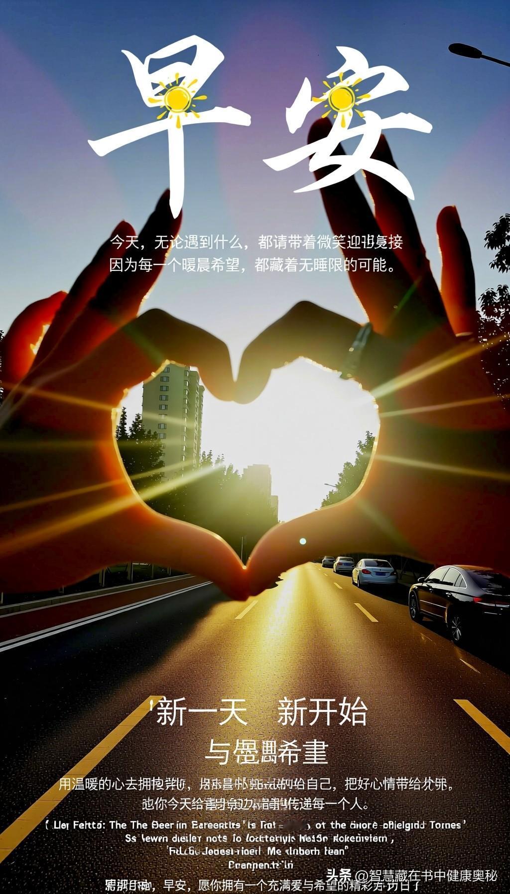 早安!新的一天悄然展开,阳光像温柔的手指轻抚着大地,唤醒每一寸沉睡的希望。今天,无论遇到什么,都请带着微笑迎接,因为每一个晨曦都藏着无限的可能。愿你心怀感恩,步伐轻快,用温暖的心去拥抱阳光,把好心情带给自己,也传递给身边的每一个人。新的一天,新的开始,愿你今天的每一刻都充满力量与美好。早安,愿你拥有一个充满爱与希望的精彩日子!