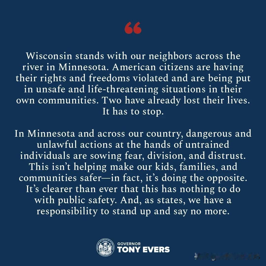 新闻:威斯康星州正在支持明尼苏达州的诉讼,该诉讼挑战特朗普总统和特朗普政府在明尼苏达州部署移民及海关执法局和边境巡逻队。