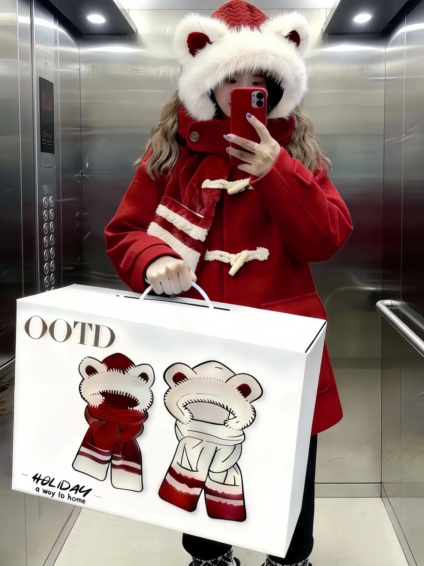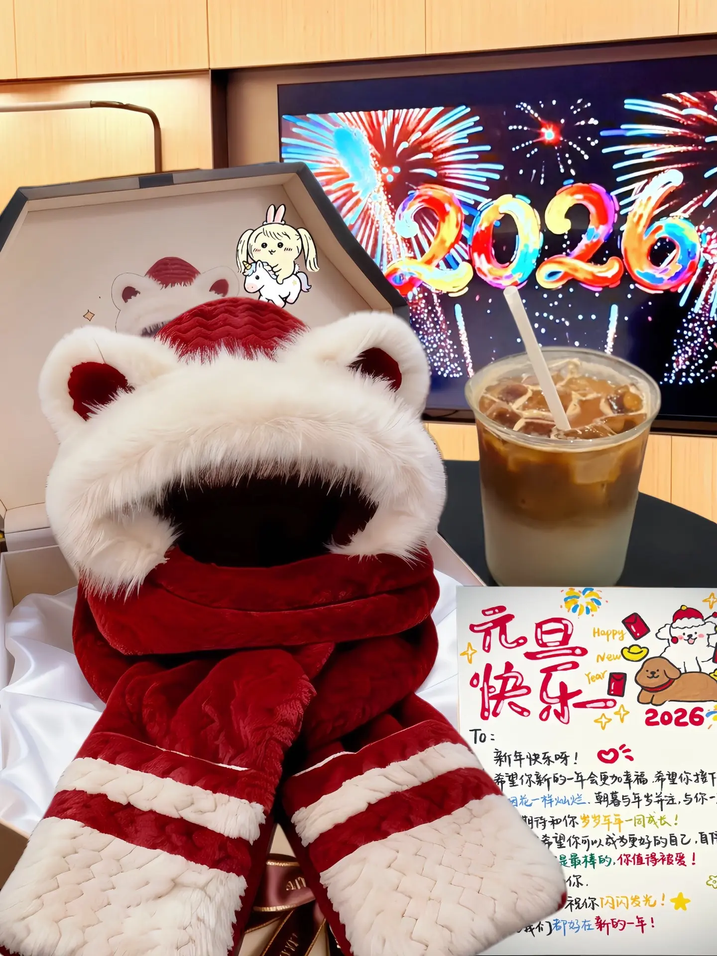 什么都是假的 只有男朋友给我买的可爱小熊耳朵一体帽围巾🧣才是真的