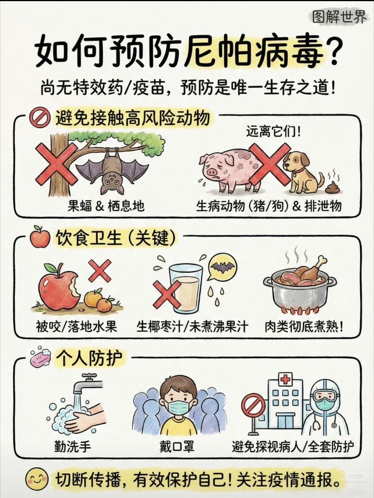 哎妈呀!尼帕病毒有多可怕,还用形容吗?你想啊,连印度人都扛不住的病毒! 拜托!屎堆里长大印度人,恒河水泡大的印度人,嫂子跨物种的印度人都扛不住呢!那得多吓人!关键没有特效药!至死率百分之75! 所以还是做好图下防护措施吧!远离印度及周边,快过年了,旅游注意点! 现在泰国已经禁止印度人入境了!接下来如果再严重,恐怕都得禁止了!禁一禁也挺好,约束一下,不然印度人快把“占领”全世界了![抠鼻][抠鼻][抠鼻][抠鼻]尼帕病毒