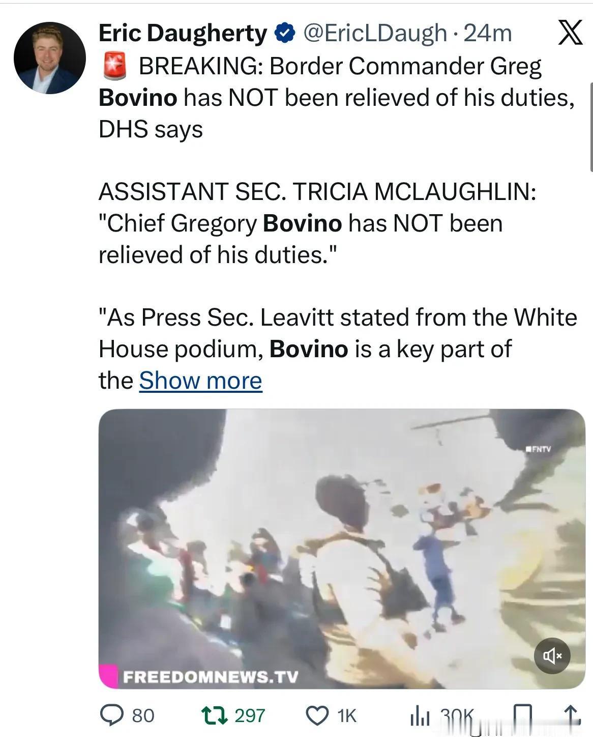 据 CNN 报道,一位知情人士透露,美国国土安全部已暂停美国边境巡逻队“特派指挥官”格雷戈里·K·博维诺(USBP)访问该机构所有官方社交媒体账户的权限,立即生效。