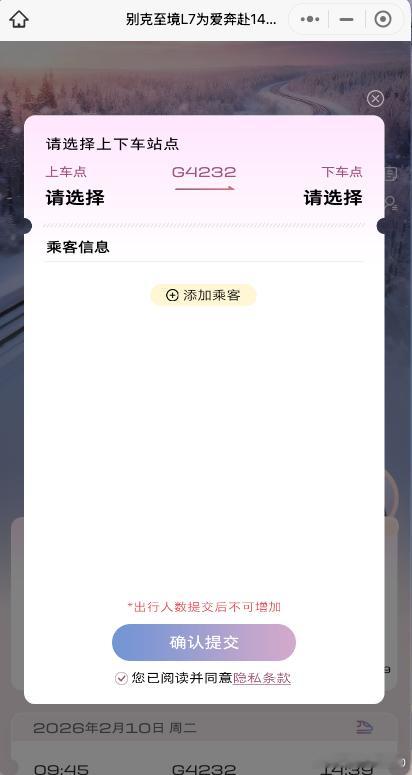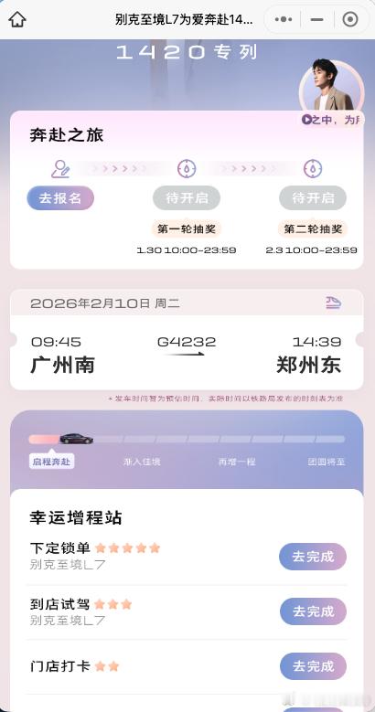 早晨看到不少博主发别克包高铁,我以为只是在一列高铁上增加了广告涂装去仔细看看,别克居然真的包下了高铁从广州南去郑州东如果刚好有这个行程,可以去别克小程序申请车票了,中签后可以在12306上面查询车票真的免费请大家坐高铁回家过年了别克至境L7包高铁送你回家