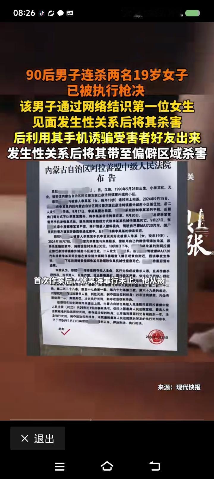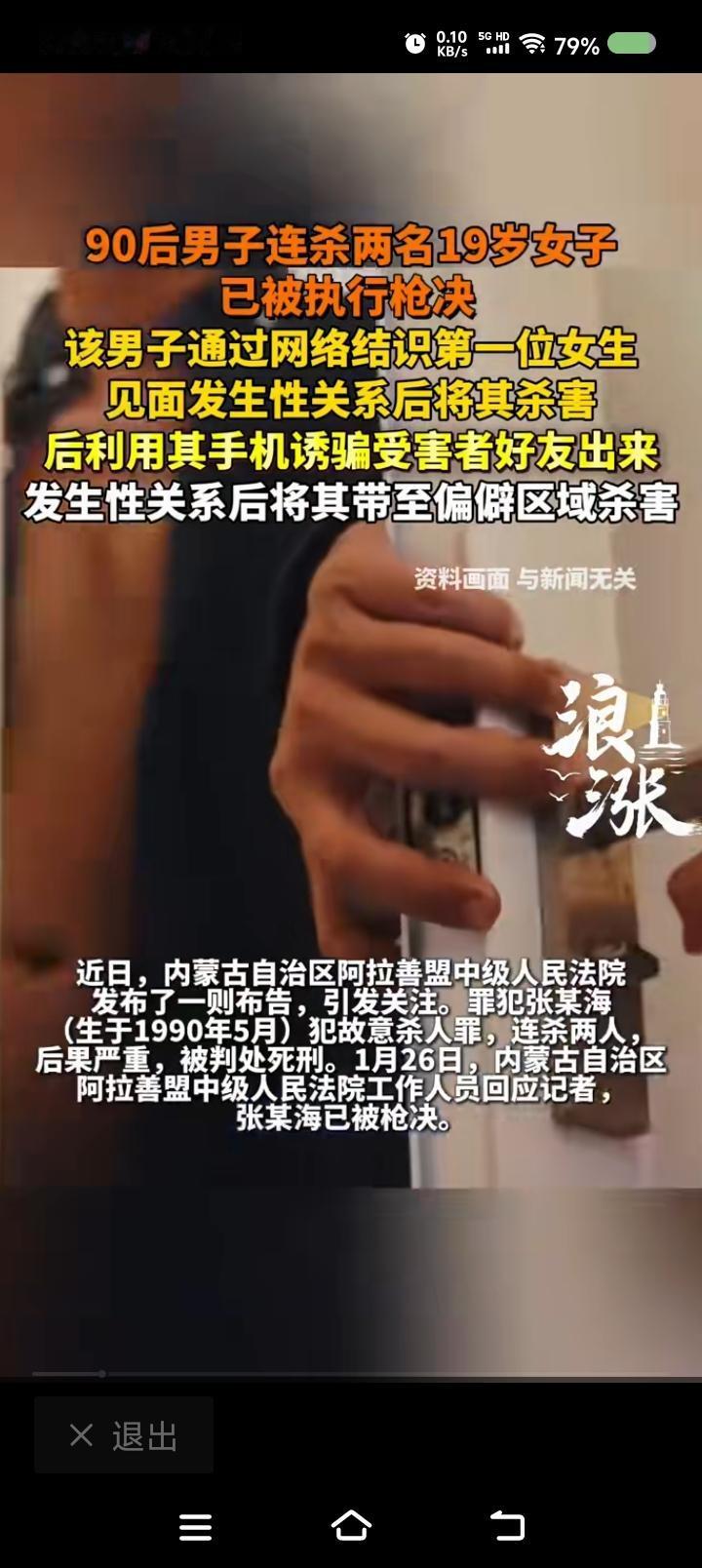 终于,听到“枪决”了!—— 据报道,一男子结识网友,发生性关系,杀害了对方;借死